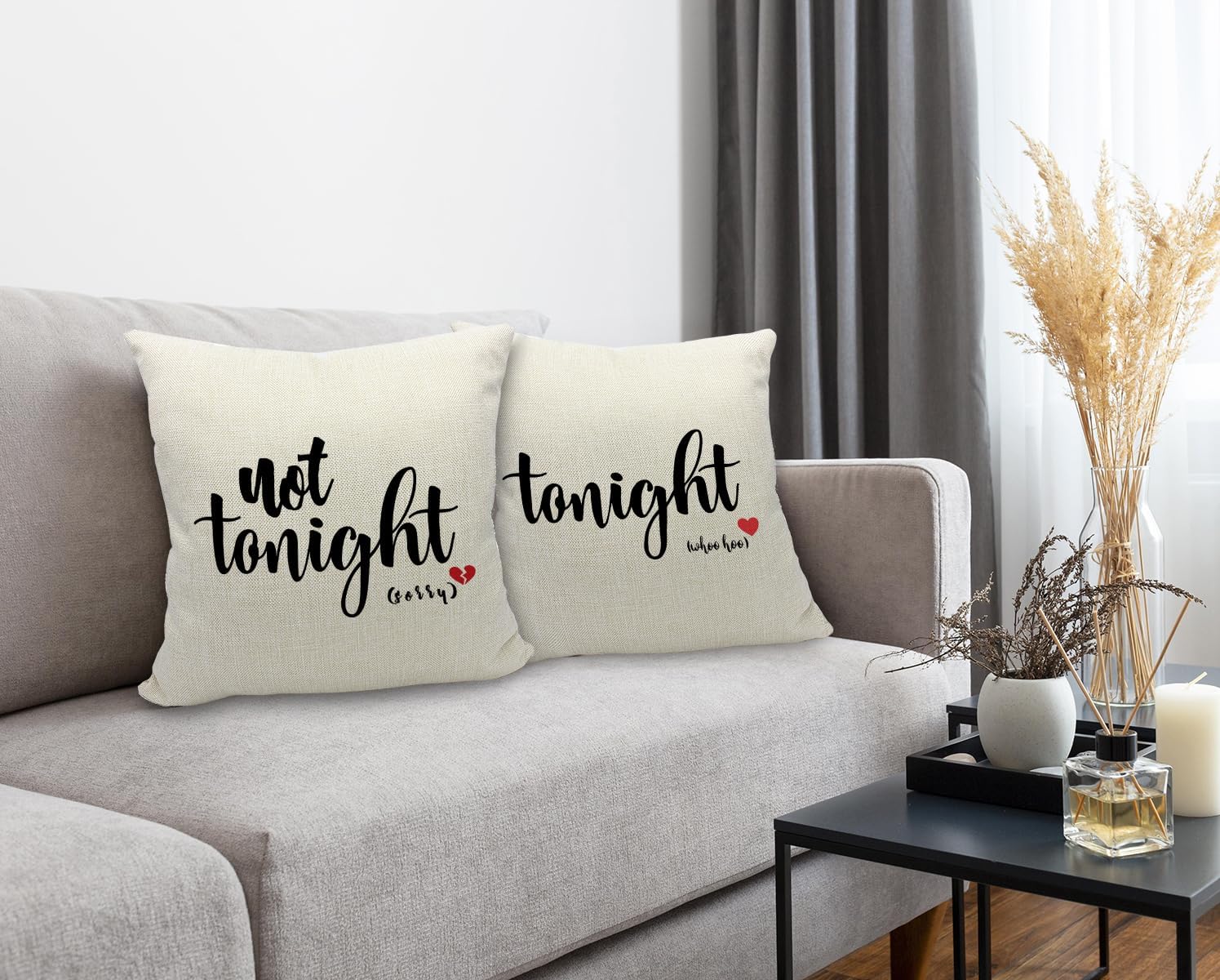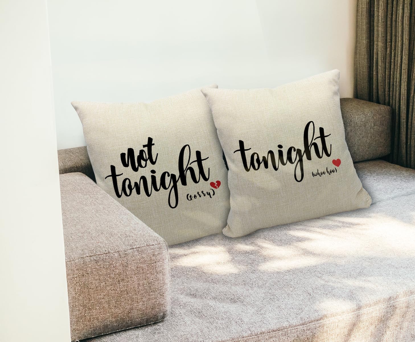 • Dual-sided Design: Enjoy the versatility of two charming patterns โ€“ "Tonight" and "Not Tonight." Playfully set the mood by flipping the pillow to match your desires, adding a touch of fun to your bedroom or sofa.