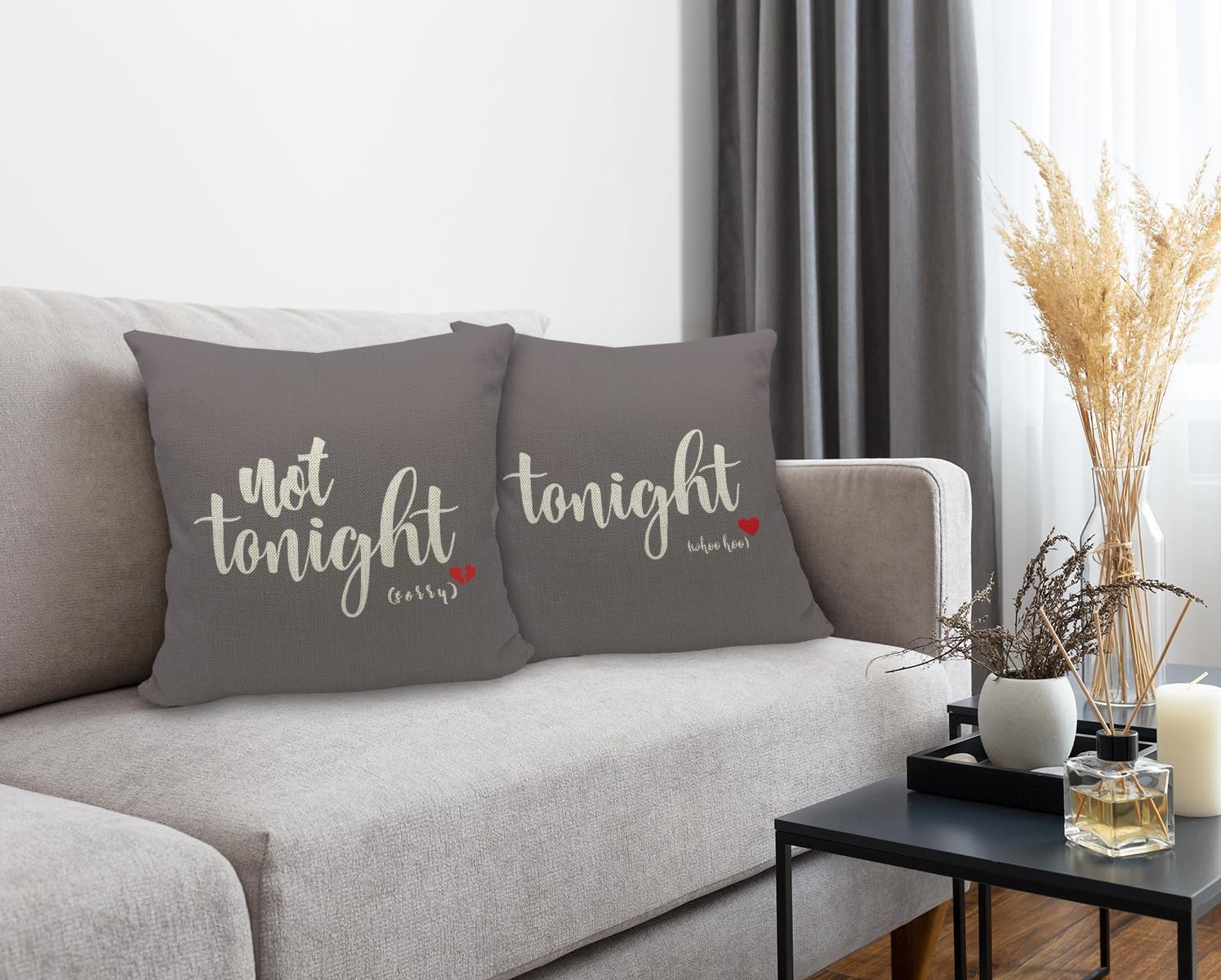 • Dual-sided Design: Enjoy the versatility of two charming patterns โ€“ "Tonight" and "Not Tonight." Playfully set the mood by flipping the pillow to match your desires, adding a touch of fun to your bedroom or sofa.