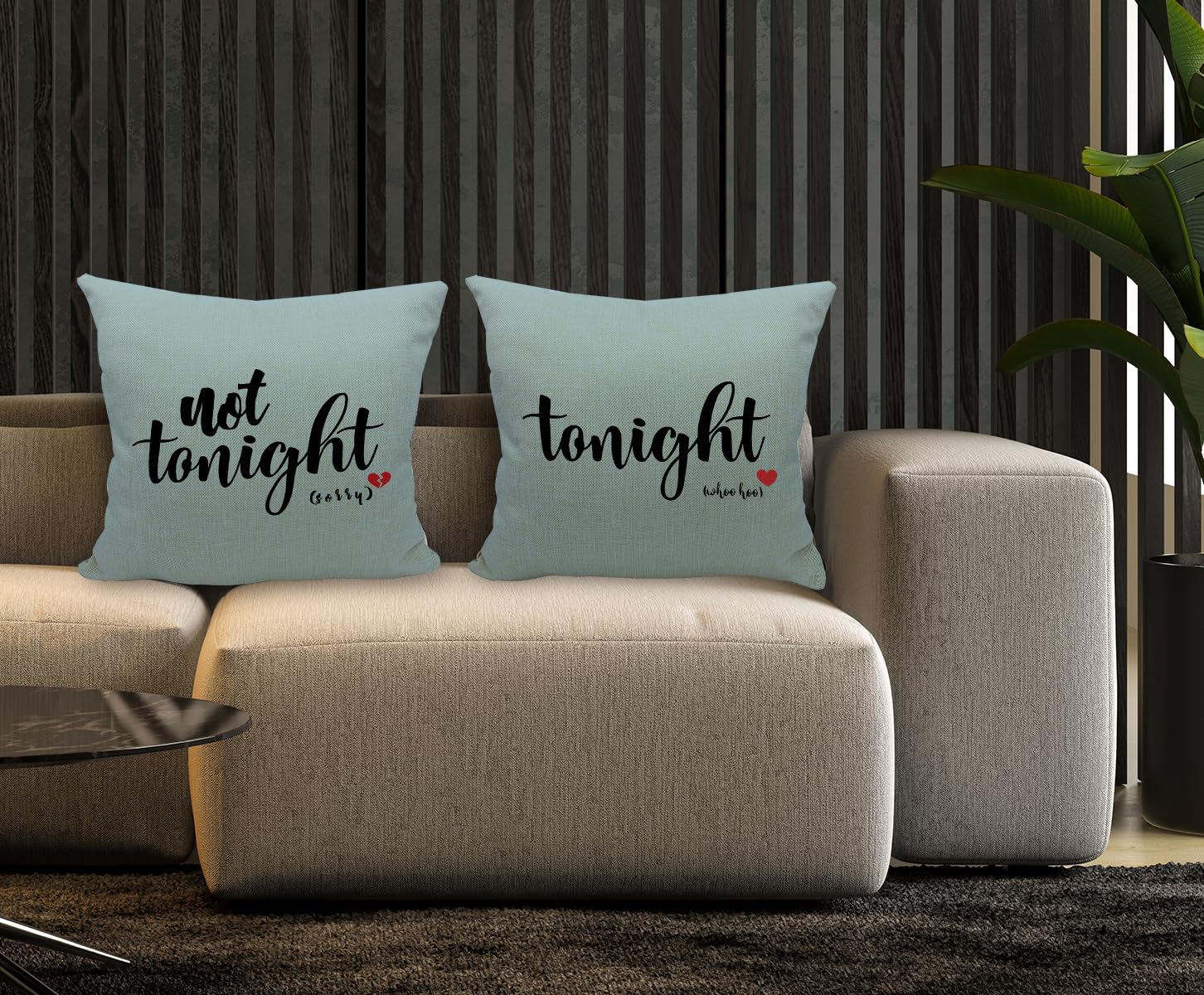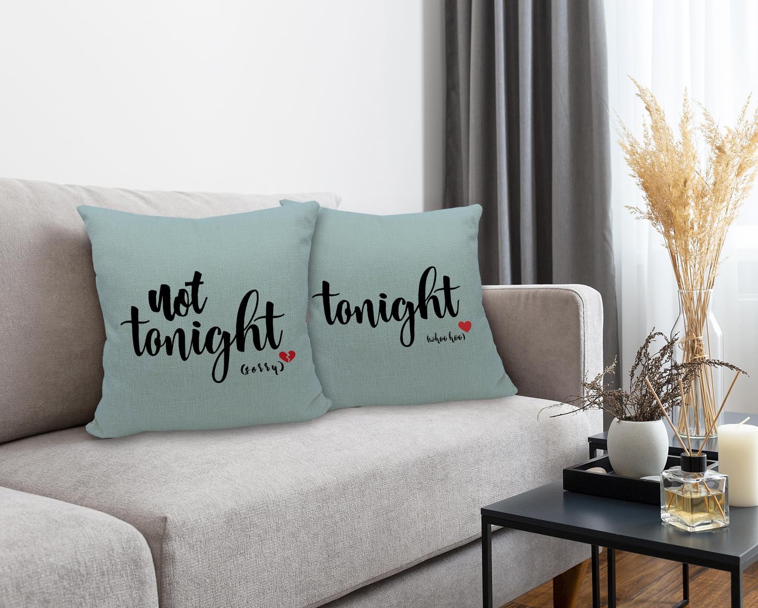 • Dual-sided Design: Enjoy the versatility of two charming patterns โ€“ "Tonight" and "Not Tonight." Playfully set the mood by flipping the pillow to match your desires, adding a touch of fun to your bedroom or sofa.