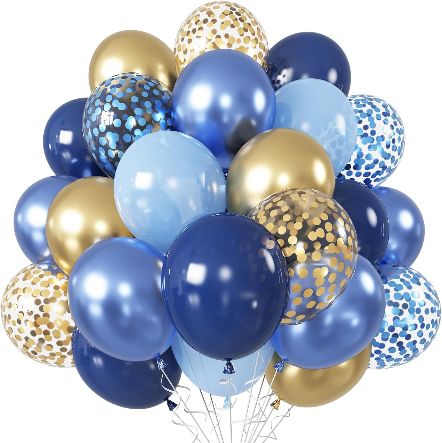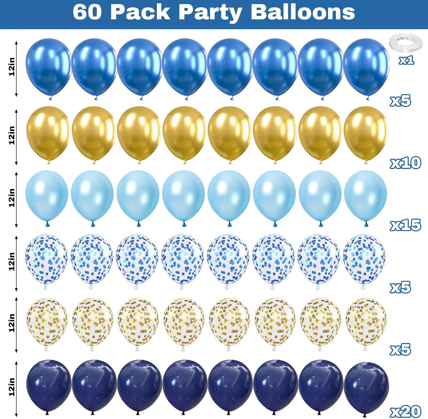 Blue and Gold Balloons, 60Pcs 12Inch Navy Pearl Party Balloons With Metallic Helium Balloon Confetti Latex Set for Boys Birthday Baby Shower Christening Decorations