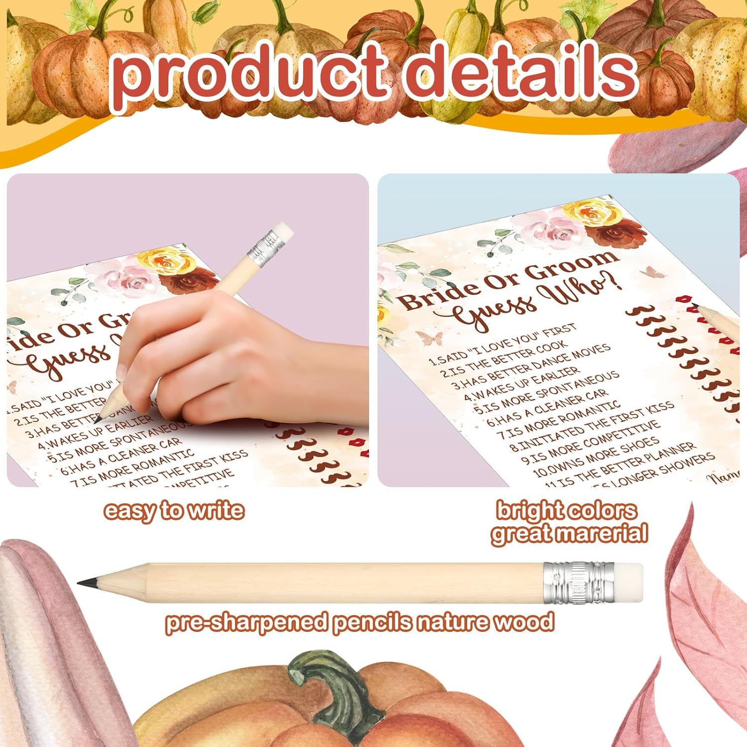 • Sturdy and Safe: made of colored paper material, our game bridal shower cards are safe and reliable, each is approx. 7.87 x 5.51 inches/ 20 x 14 cm; Meanwhile, the pencil adopts wood material, and measures about 3.94 inches/ 10 cm in length; They are ideal supplements to bridal showers, wedding parties, engagement parties and bachelorette parties