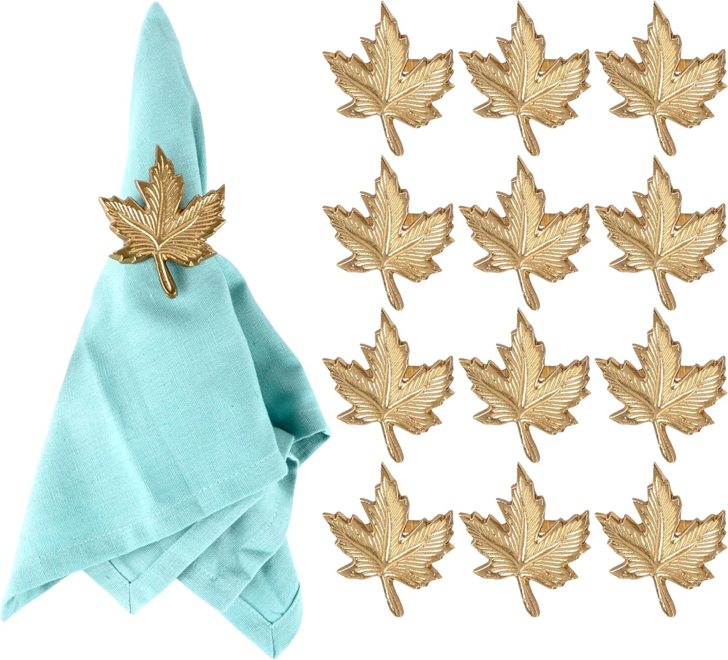 • โœ… SET OF 12 -IDEAL SIZE FOR TABLE SETTINGS & GIFTING: Each gold maple leaf napkin ring measures 1.75 x 2.5 x 3 Inches, designed to fit most standard cloth or paper napkins. Comes in a complete set of 12, ideal for hosting full dinner tables, holiday parties, or autumn gifting.