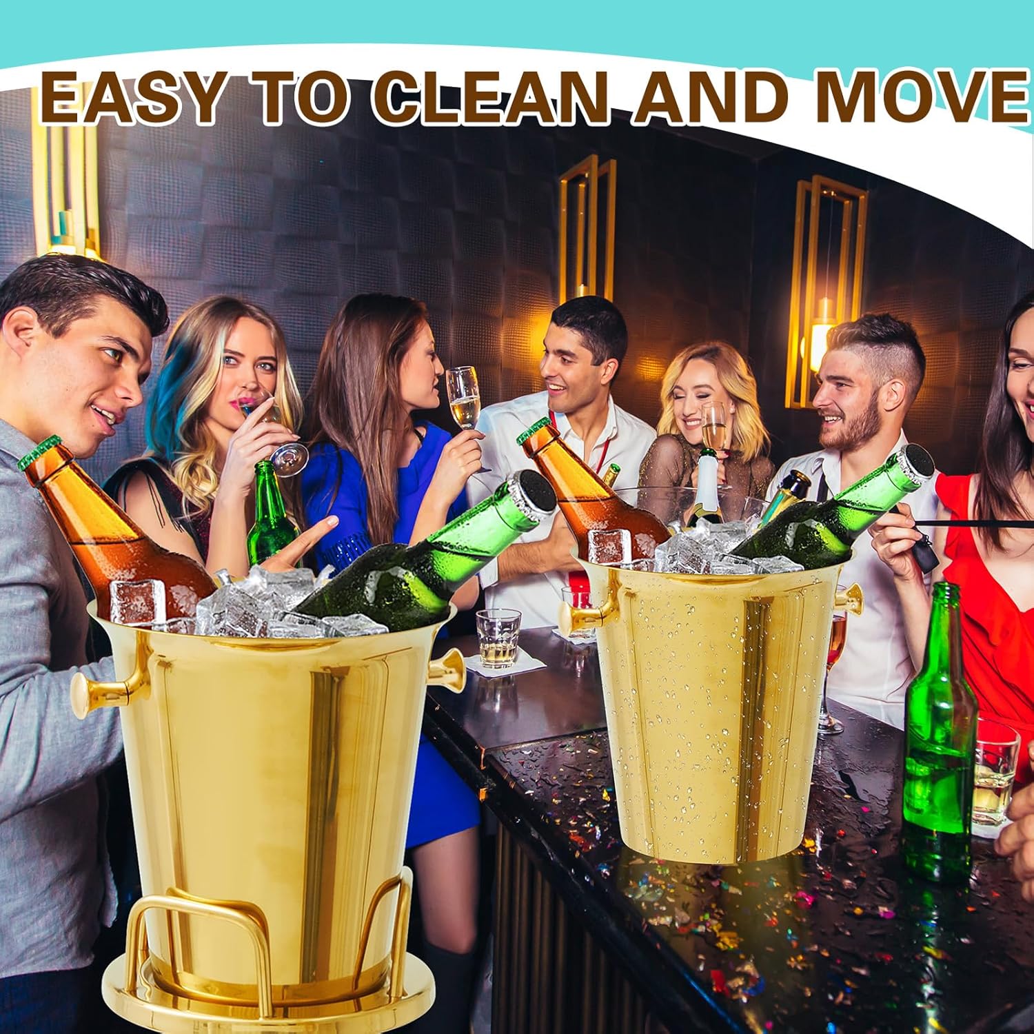 Lallisa 2 Pieces Wine Ice Bucket with Stand Stainless Steel Standing Champagne Ice Bucket Cube Container on Stand for Beer KTV Club Bar BBQ Wedding 35.8in 5L (Gold)