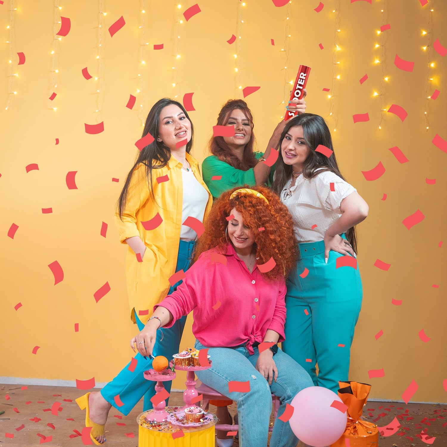 • 【Safe To Use Confetti Poppers】Our Red confetti poppers offer a guilt-free party experience! We prioritize safety and sustainability by ensuring our Red confetti cannon party is eco-friendly, non-toxic, and biodegradable. With our commitment to using the highest quality materials, you can enjoy a worry-free celebration that won't harm the environment.so you and your guests can enjoy a wonderful party and safe to use both indoor and outdoor events.