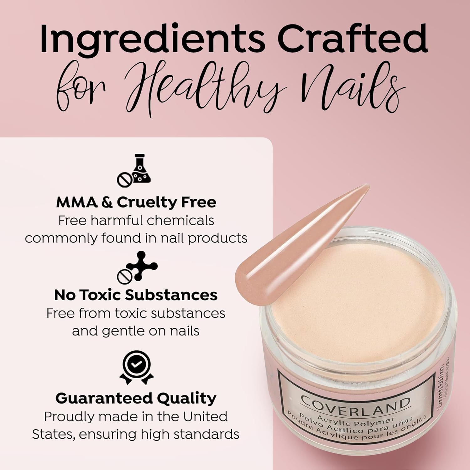 • βœ”οΈππ‘πŽπ…π„π’π’πˆπŽππ€π‹ 𝐆𝐑𝐀𝐃𝐄: The flexibility and adhesion properties of Coverland colored acrylic nail powder make it easy to shape nails with precision, and offers nice control for professionals who prefer to work with a polymerization rate of moderate to fast.