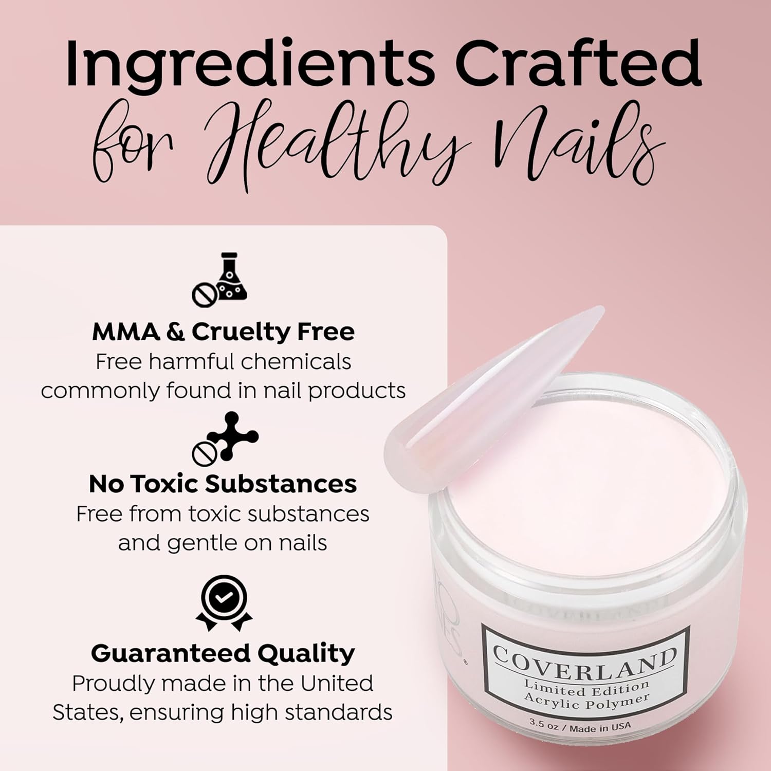 • βœ”οΈππ‘πŽπ…π„π’π’πˆπŽππ€π‹ 𝐆𝐑𝐀𝐃𝐄: The flexibility and adhesion properties of Coverland colored acrylic nail powder make it easy to shape nails with precision, and offers nice control for professionals who prefer to work with a polymerization rate of moderate to fast.