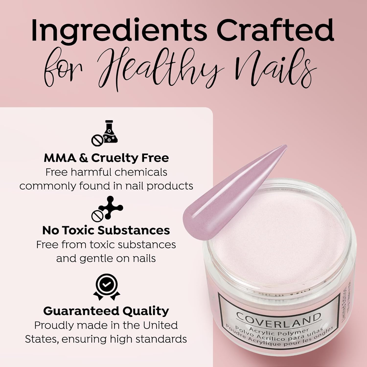 • βœ”οΈππ‘πŽπ…π„π’π’πˆπŽππ€π‹ 𝐆𝐑𝐀𝐃𝐄: The flexibility and adhesion properties of Coverland colored acrylic nail powder make it easy to shape nails with precision, and offers nice control for professionals who prefer to work with a polymerization rate of moderate to fast.