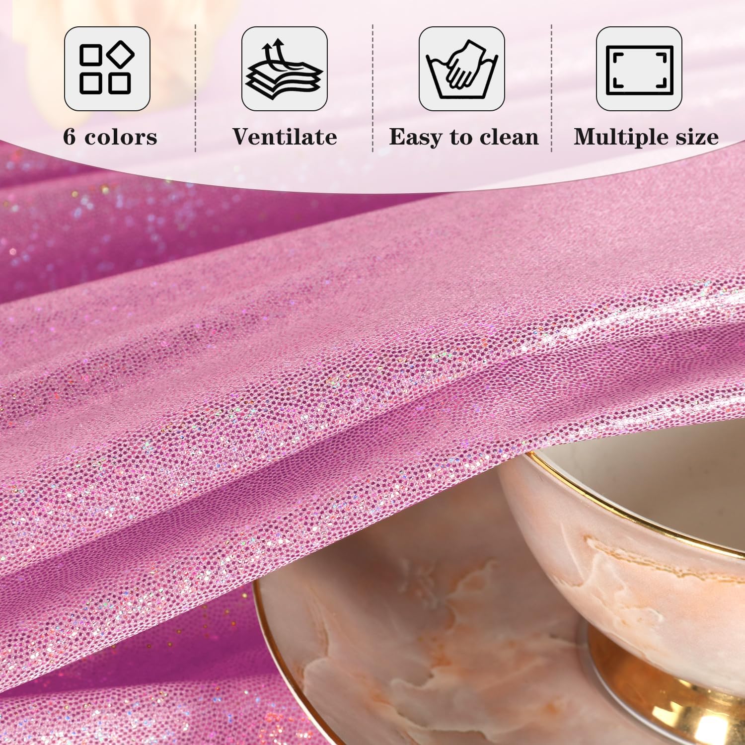 • UNIQUE REFLECTION EFFECT: The rectangle glittering tablecloths can reflect different light at different angles. The stronger the light, the brighter tablecloth reflect, which provides cheerful and festival atmosphere for the situation.