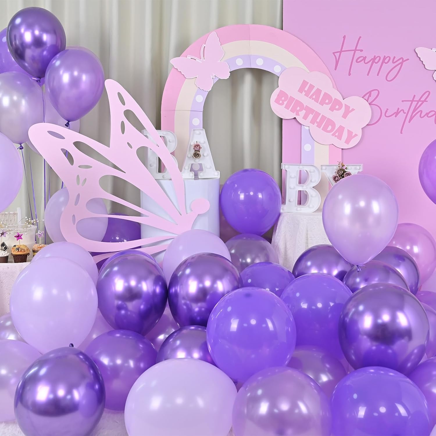 Togvu Purple Balloons, 60 Packs 12 Inch Metallic Chrome Pearl Macaron Light Different Shades Balloons for Girl Birthday, Wedding, Anniversary, Baby Shower, Princess Decoration QQ-5023
