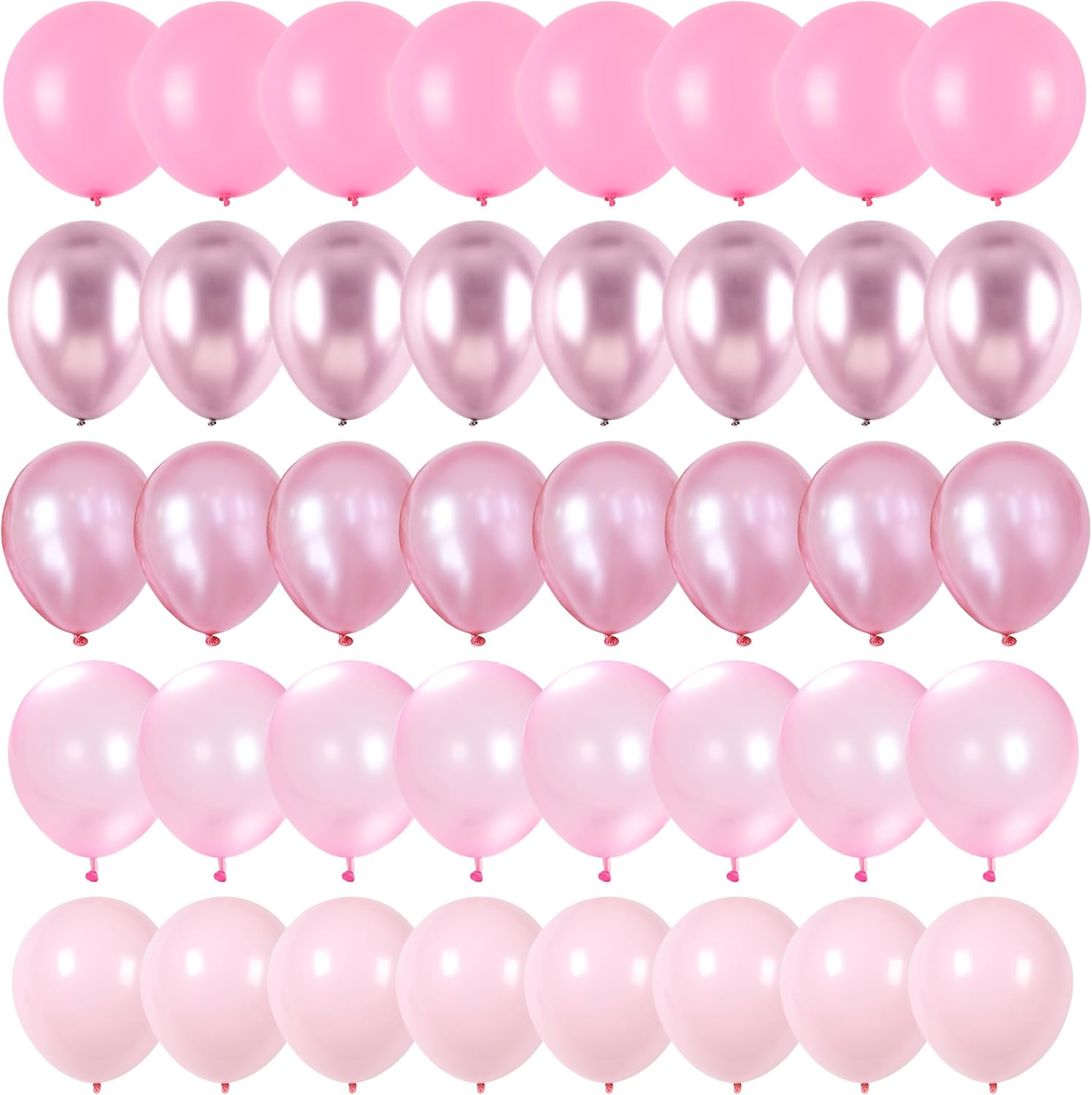 Pink Balloons Set, 60 Packs 12 Inch Metallic Chrome Pink Pearl Macaron Light Pink Different Shades Balloons for Girl Women Birthday Decorations, Wedding, Christening, Baby Shower Party