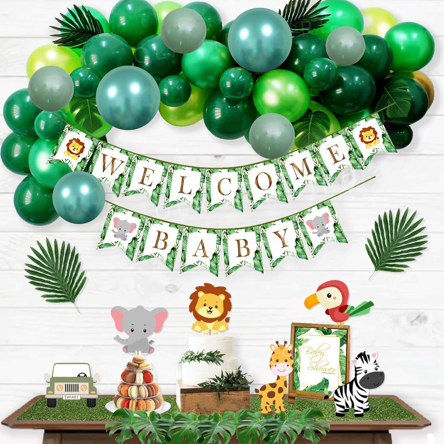 Togvu Green Balloons, 60 Packs 12 Inch Different Shades Dark Emerald Lime Metallic Chrome Olives Sage Latex Balloons for Birthday, Baby Shower, Jungle Safari Party Decoration QQ-5023