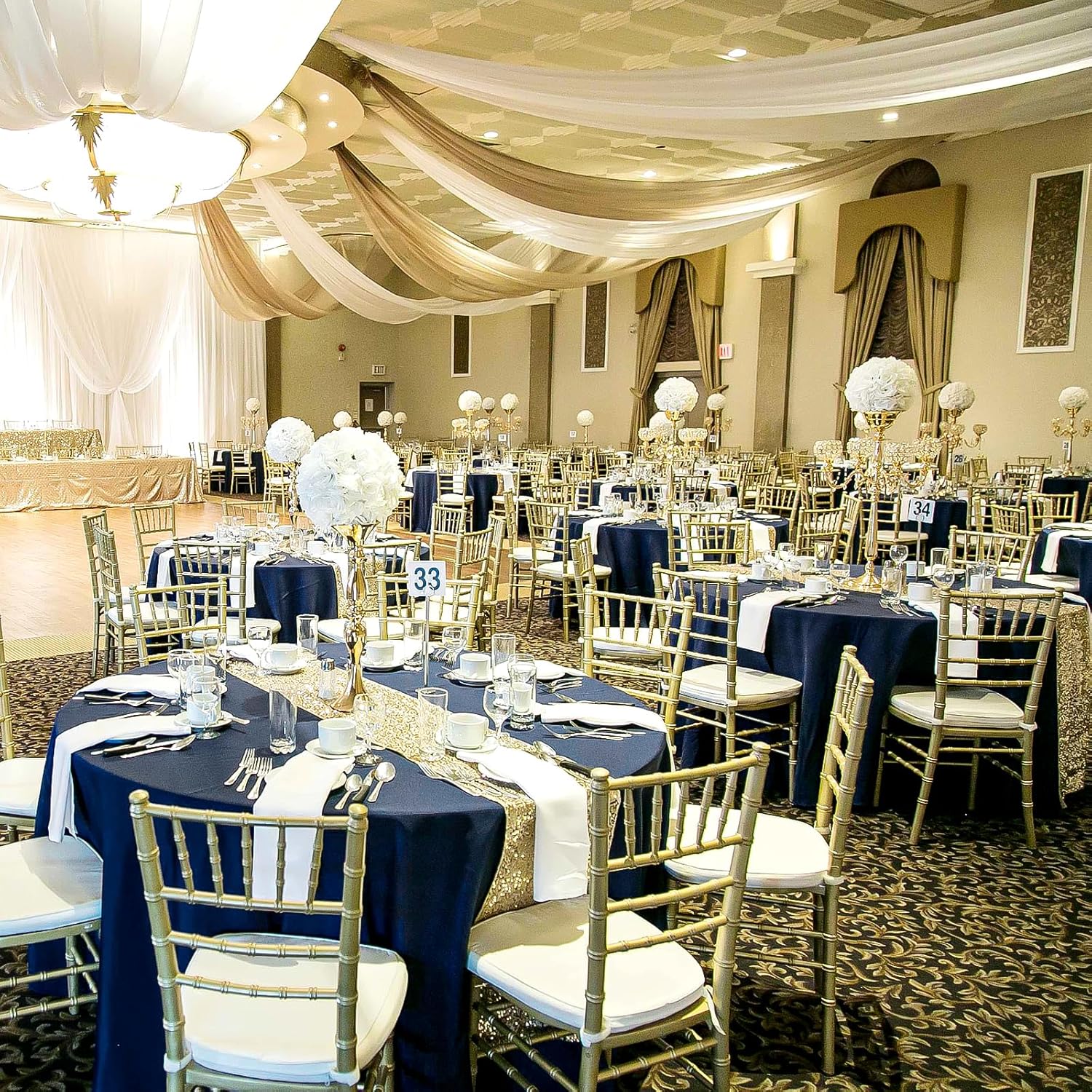 • 🥂【Size】This Navy Blue polyester table cloth diameter is 108 Inch, for standard 6ft(72inch) round table, providing 18 inch drop, If your round table is 8ft(96inch), providing 6 inch drop. We can provide the following sizes:Round: 60", 90", 108", 120".Please measure the size of your table before purchasing.