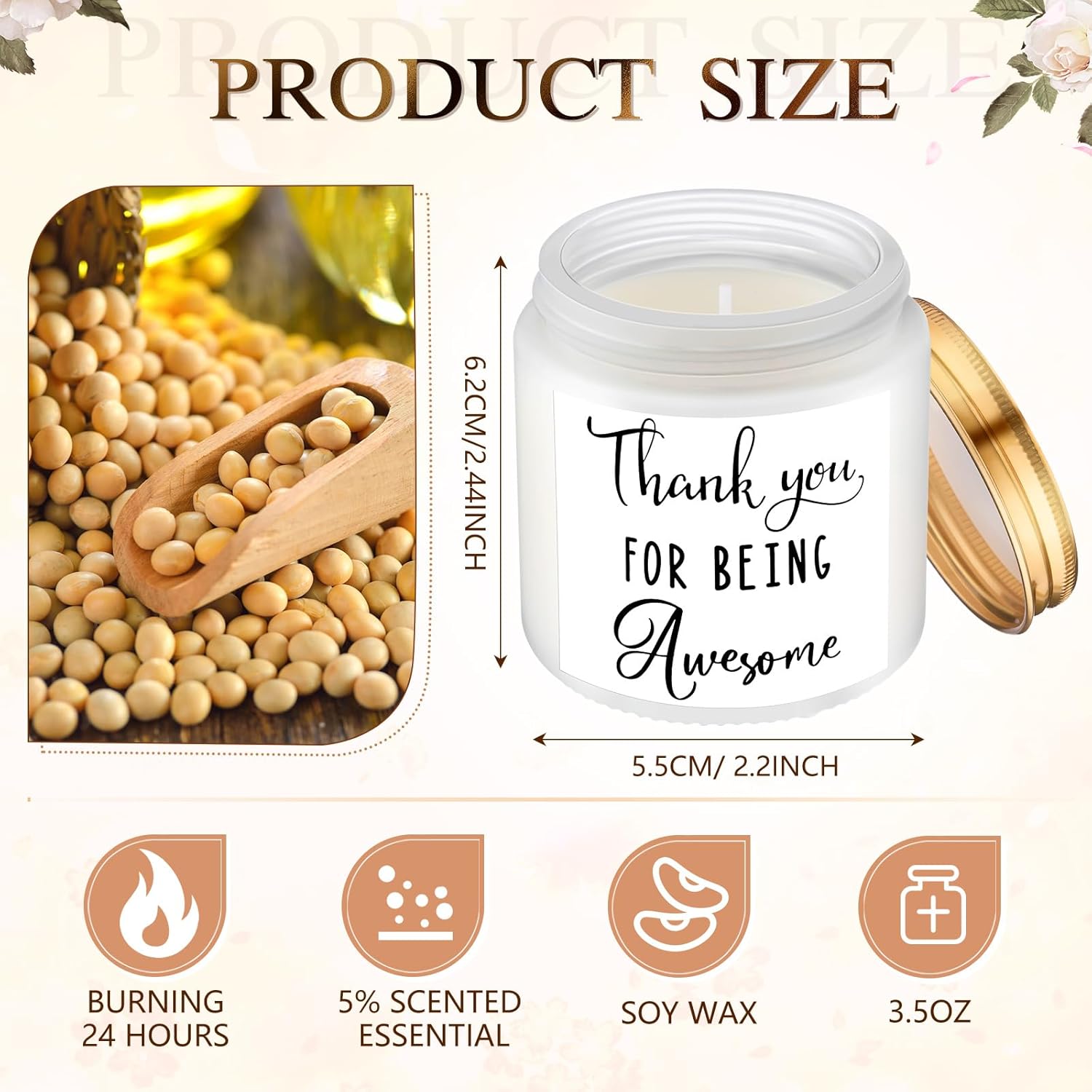 • Quality Soy Wax: our scented thank you candles gift use natural soy wax to keep the scent for a long time; Containing natural plant essence and a little essential oil, they smell refreshing, which can help you create a relaxed and pleasant atmosphere