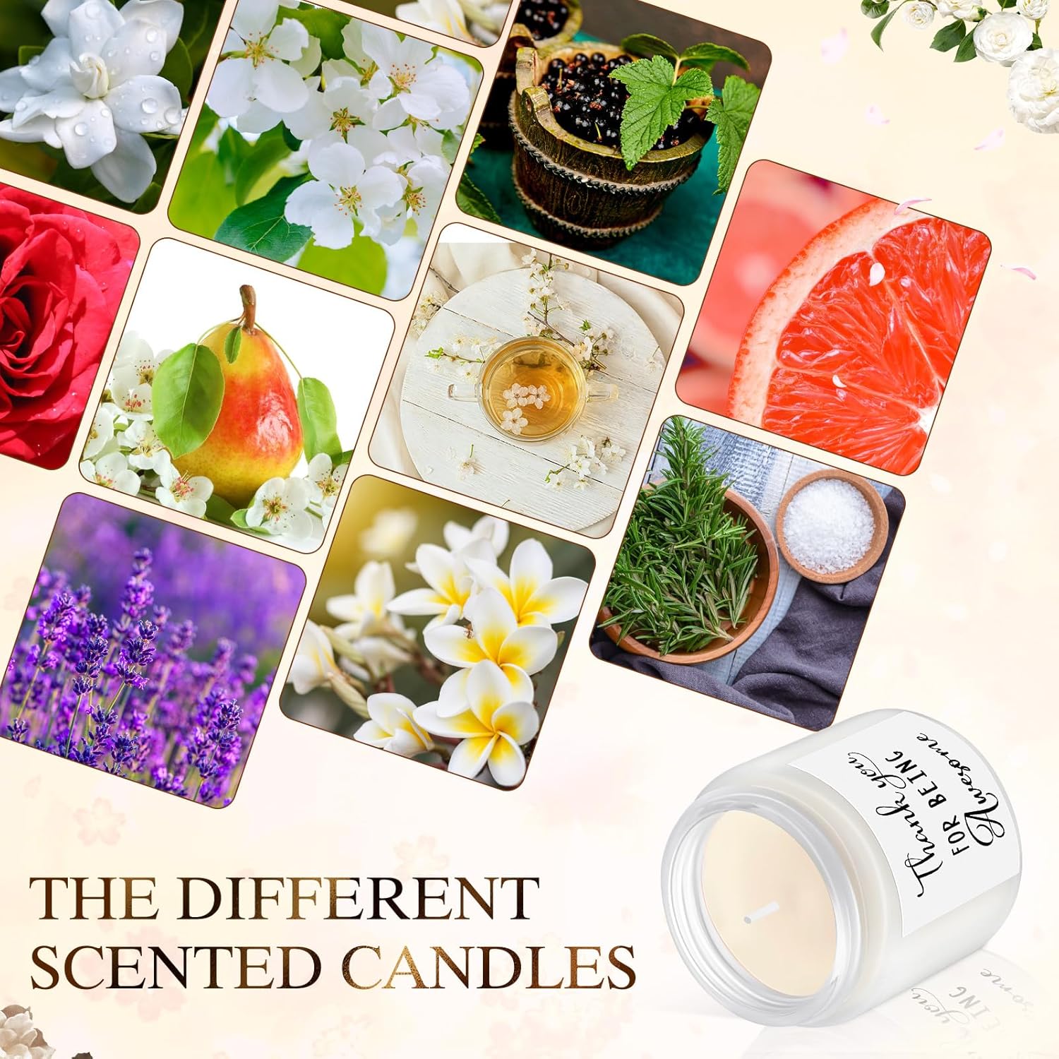 • Sufficient Quantity: you will receive 20 thank you scented candles in 10 scents, including lavender, berry basil, neroli, grapefruit and bergamot, gardenia, jasmine, white tea, sage salt, rose, English pear freesia, 2 of each scent; The aroma is rich and sufficient, and can be given to family, friend, employee, etc., to express blessings