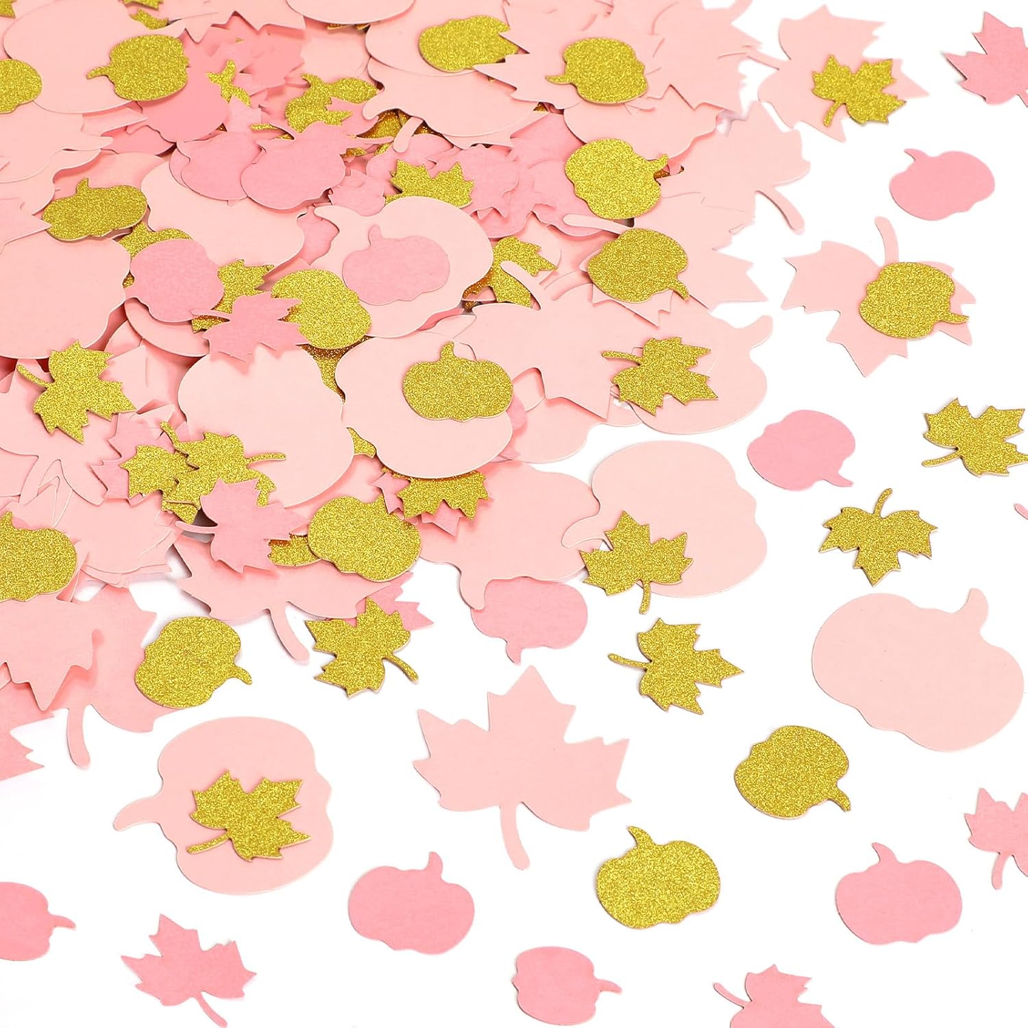 • Cute Thanksgiving Elements: Fall table confetti have stylish styles, designed as pumpkin and maple leaf shape, ideal for baby shower, birthday party, gender reveal party, Thanksgiving party, fall themed party; Different sizes, pink and glitter gold color, shiny and vivid, looks eye catching and cute, easy to add atmosphere for your party