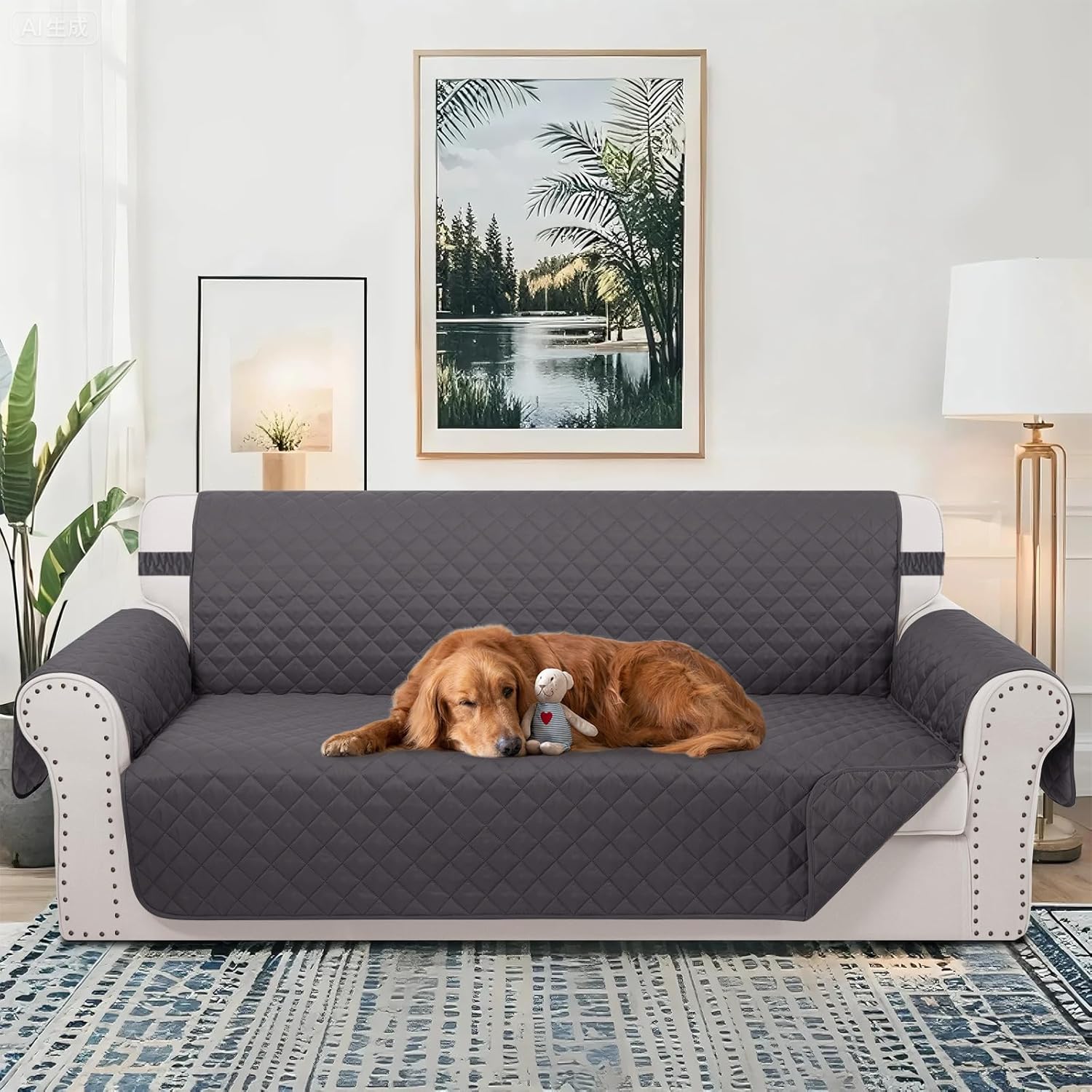 Reversible Oversized Sofa Covers Couch Cover Furniture Protector for Dogs Elastic Straps Water Resistant(XLSofa,Dark Grey/Dark Grey)