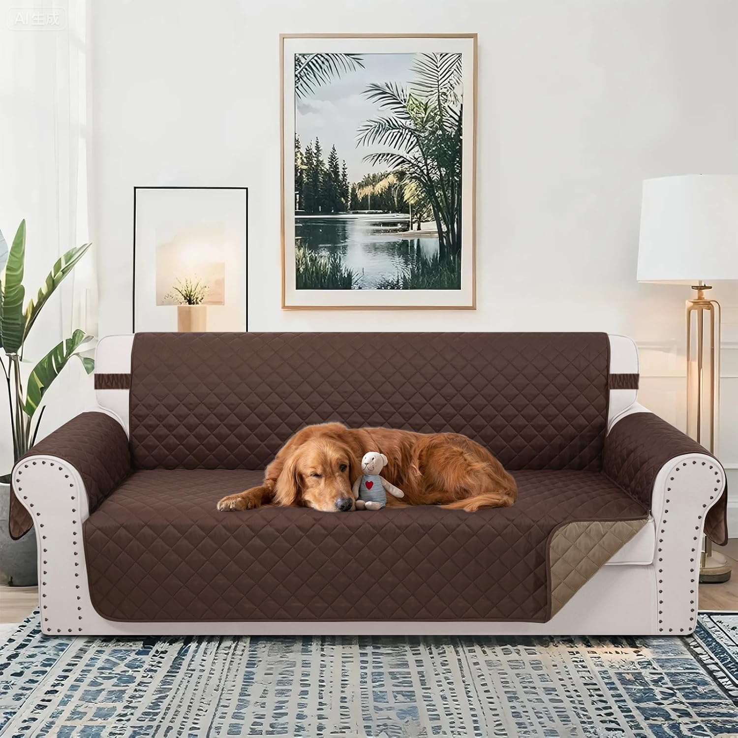 Reversible Oversized Sofa Covers Couch Cover Furniture Protector for Dogs Elastic Straps Water Resistant(XLSofa,Chocolate/Chocolate)
