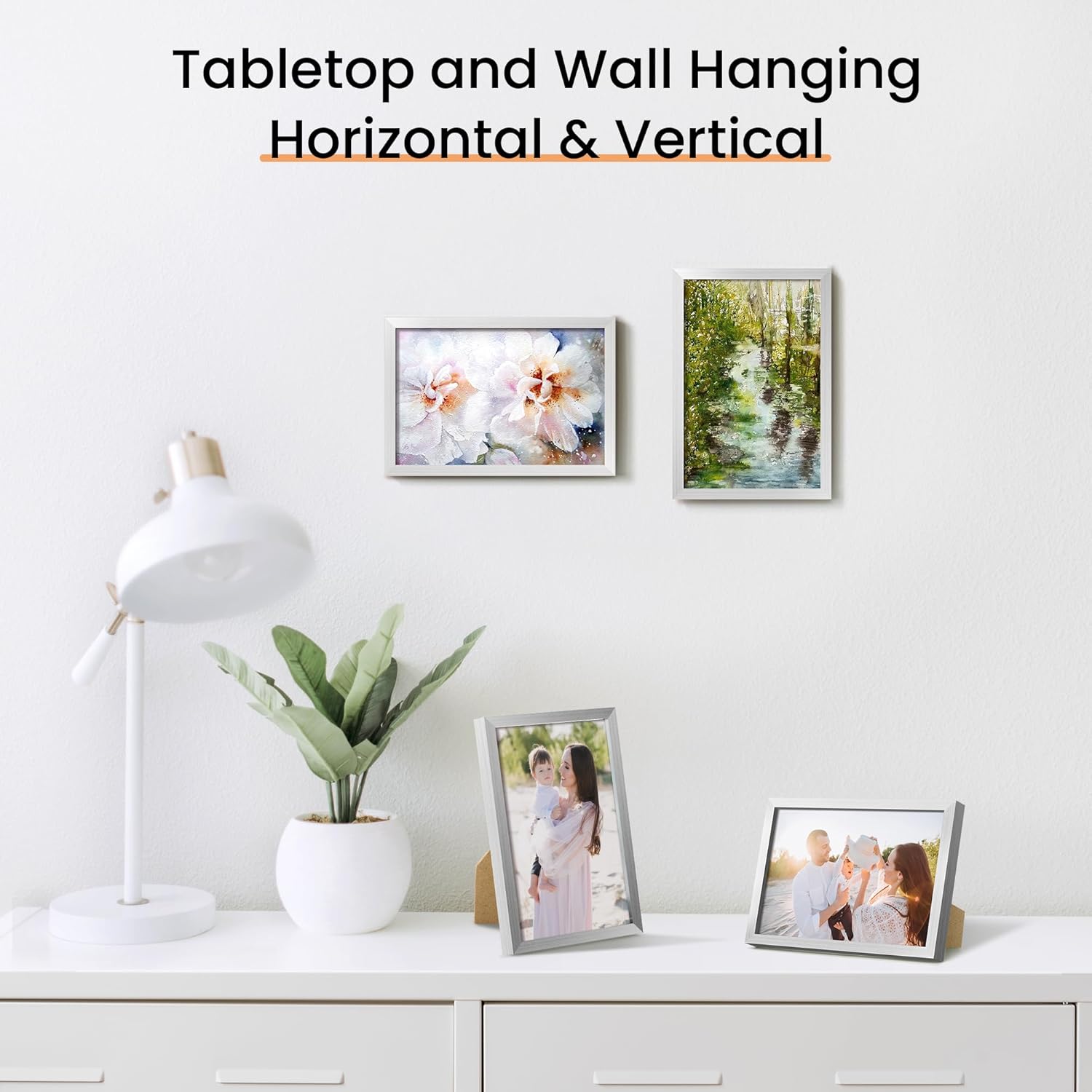 upsimples 4x6 Picture Frame Set of 3, Made of High Definition Glass for 4 x 6, Wall and Tabletop Display Thin Border Photo Frames for Home Decor, Silver