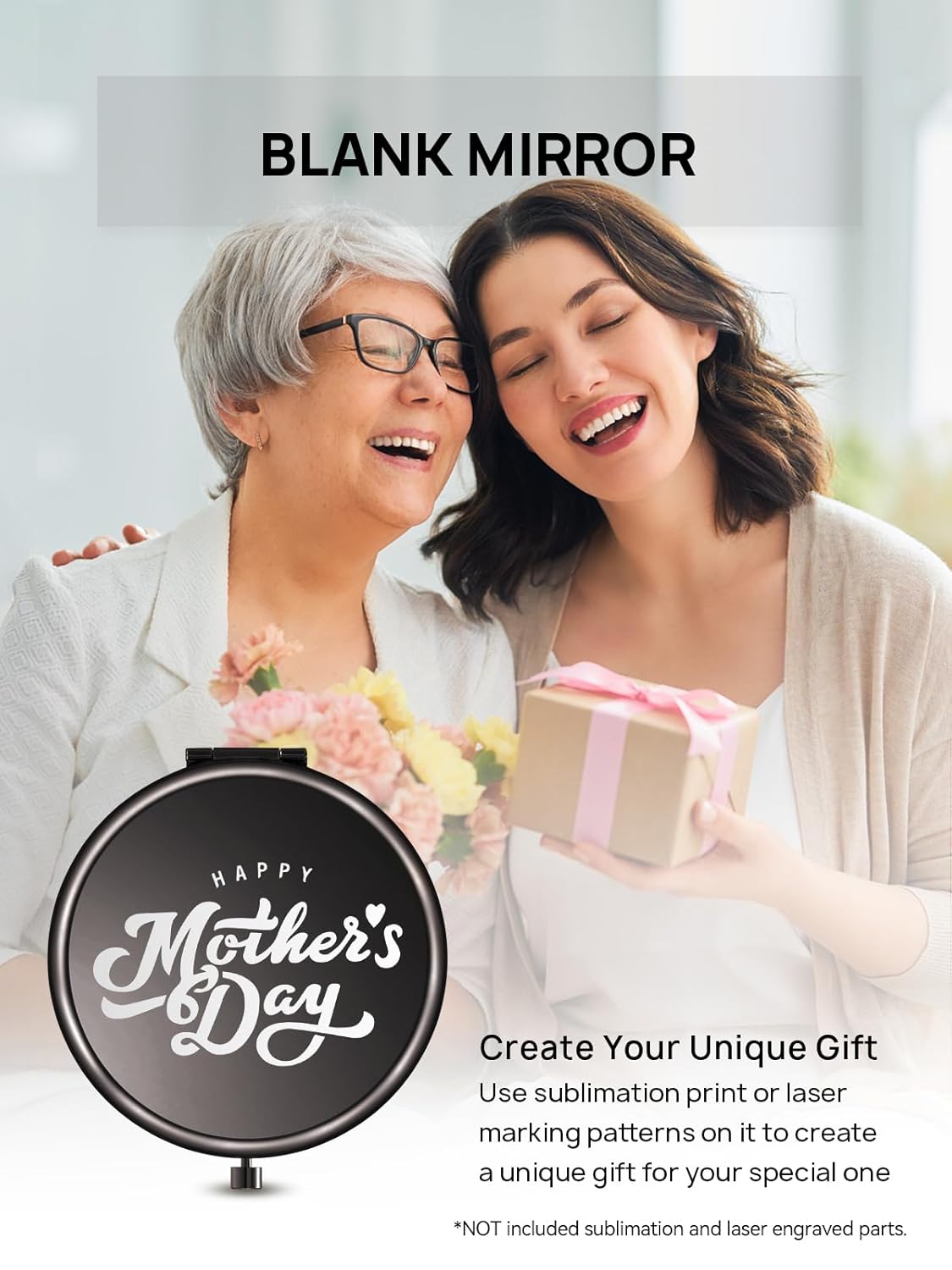 • BLANK MIRROR: DIY friendly. Use sublimation print or laser marking patterns on it to create a unique gift. Customize gifts for your mom, father, daughter, friend, wife, etc., to make them feel special