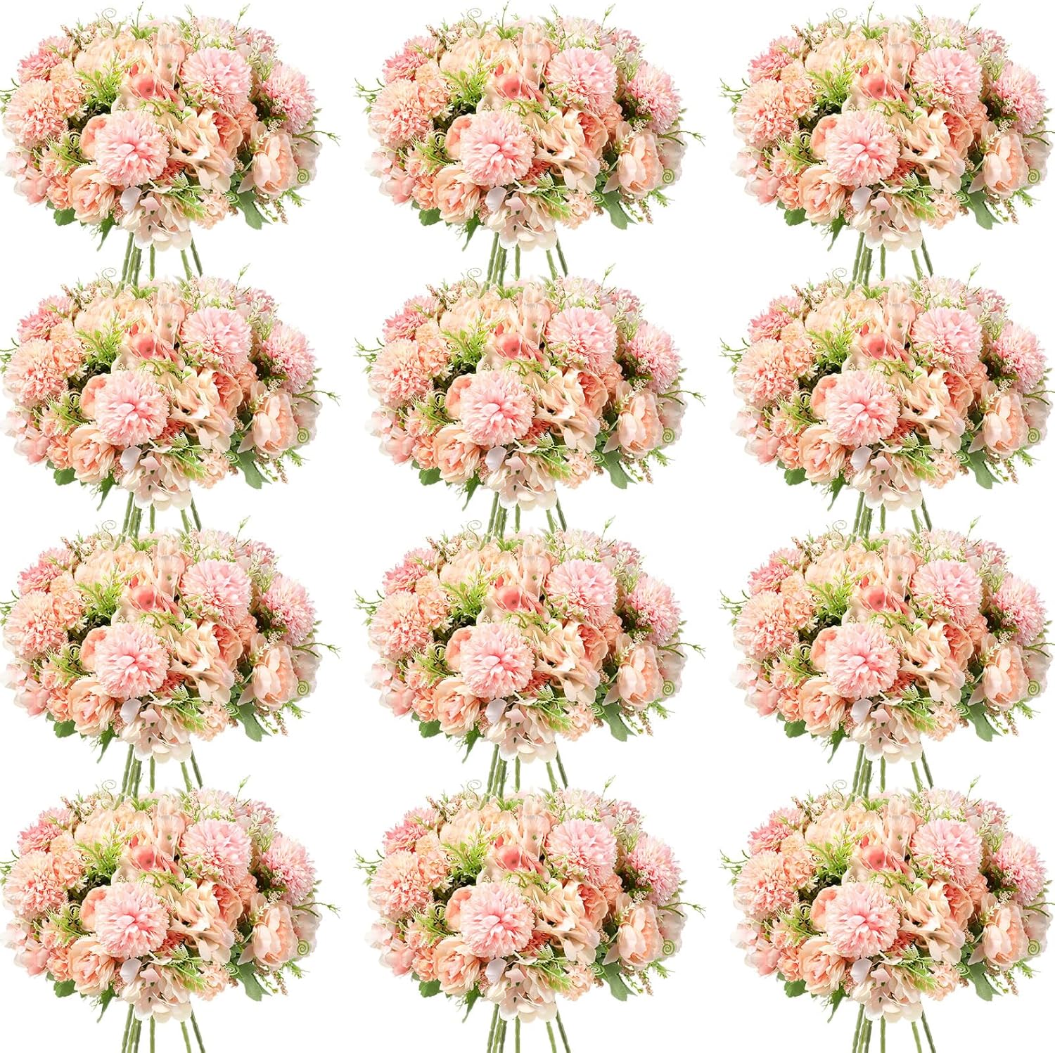 Tigeen Artificial Flowers Artificial Peonies Silk Flowers Faux Peony Fake Peony Silk Hydrangea Bouquet for Wedding Table Centerpiece Floral Vase Decor(Light Pink,12 Bundles)