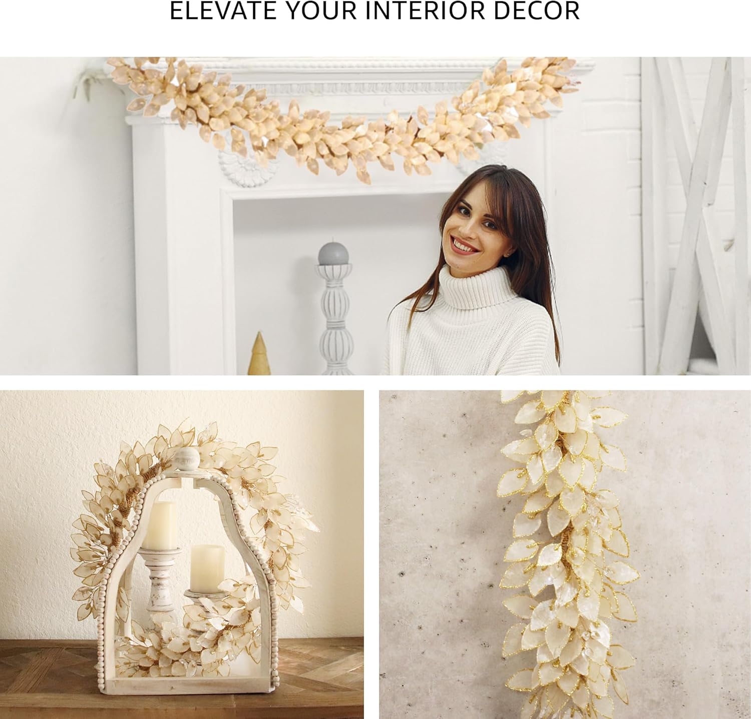• Artisanal Craftsmanship: Each glitter-edged shell leaf is hand-cut and thoughtfully strung together, showcasing meticulous craftsmanship and attention to detail.