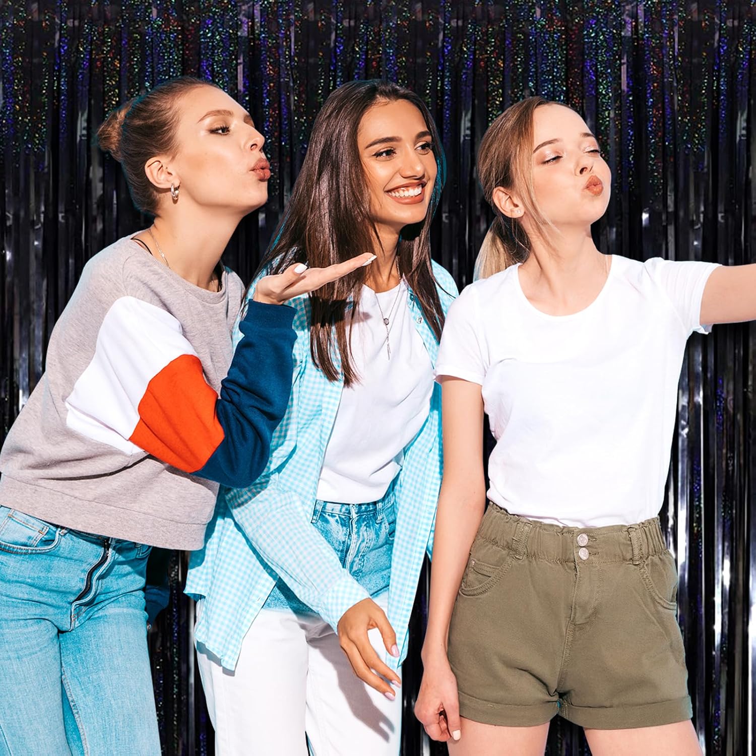 • Easy To Assemble | Strong Adhesive | Not Easy Fade : The foil fringe curtain backdrop party decorations come with double-sided adhesive tape, easy to use, just tear off the back of adhesive tape, then paste this streamers backdrop curtains on the top of wall, window, table, or as door fringe decoration.