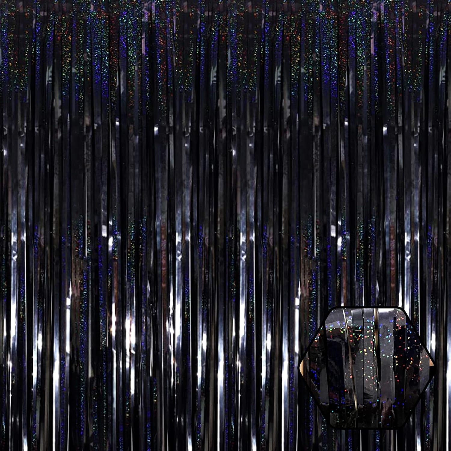 3 Pack Black Foil Fringe Curtain Backdrop, 3.28Ft x 8.2Ft Metallic Tinsel Foil Fringe Streamer Curtains for Photo Booth, Mother's Day, Easter, Birthday, Wedding Party Decorations