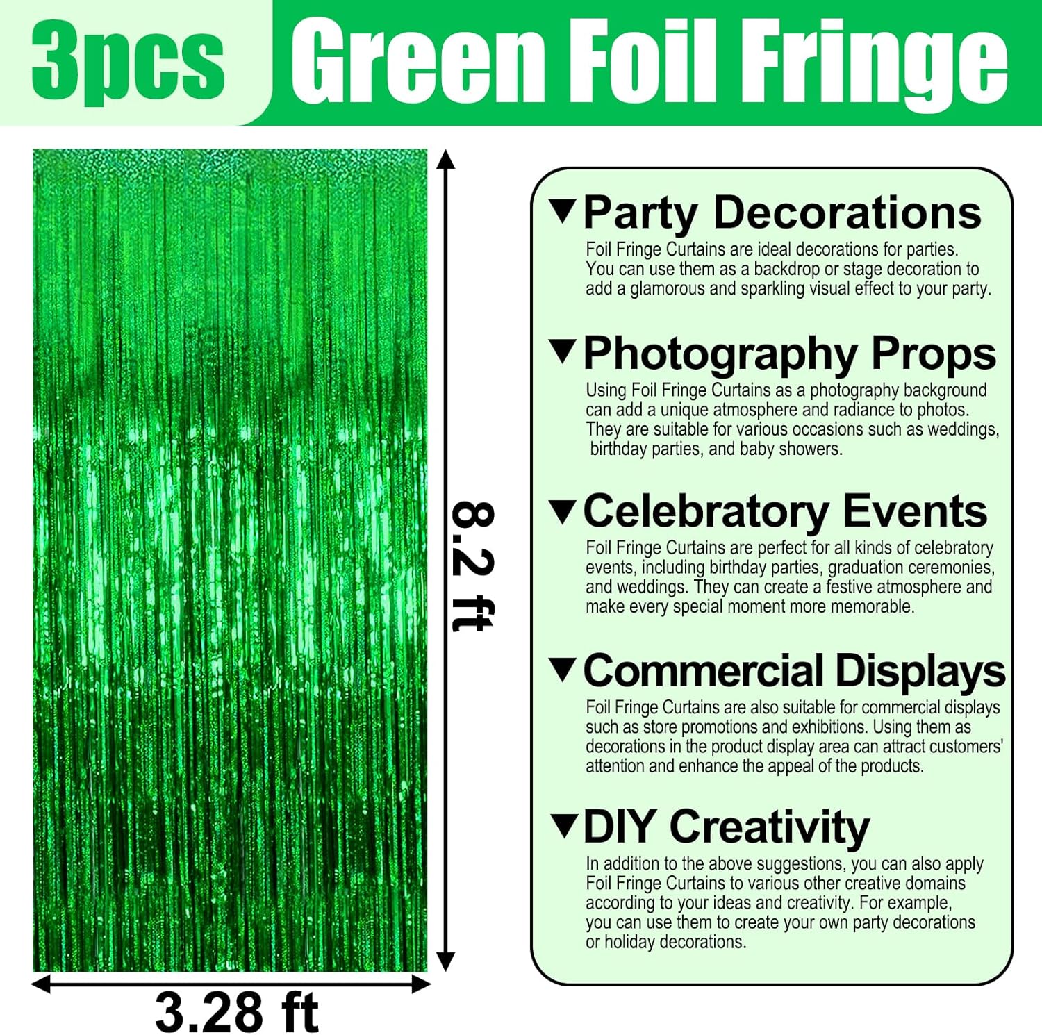 • Widely Applications:The foil fringe backdrop are wonderful finishing touch for any theme party such as birthday party, theme party, Halloween, Christmas, New Year Eve, bachelorette party, wedding, bridal shower, baby showers, graduations Etc.