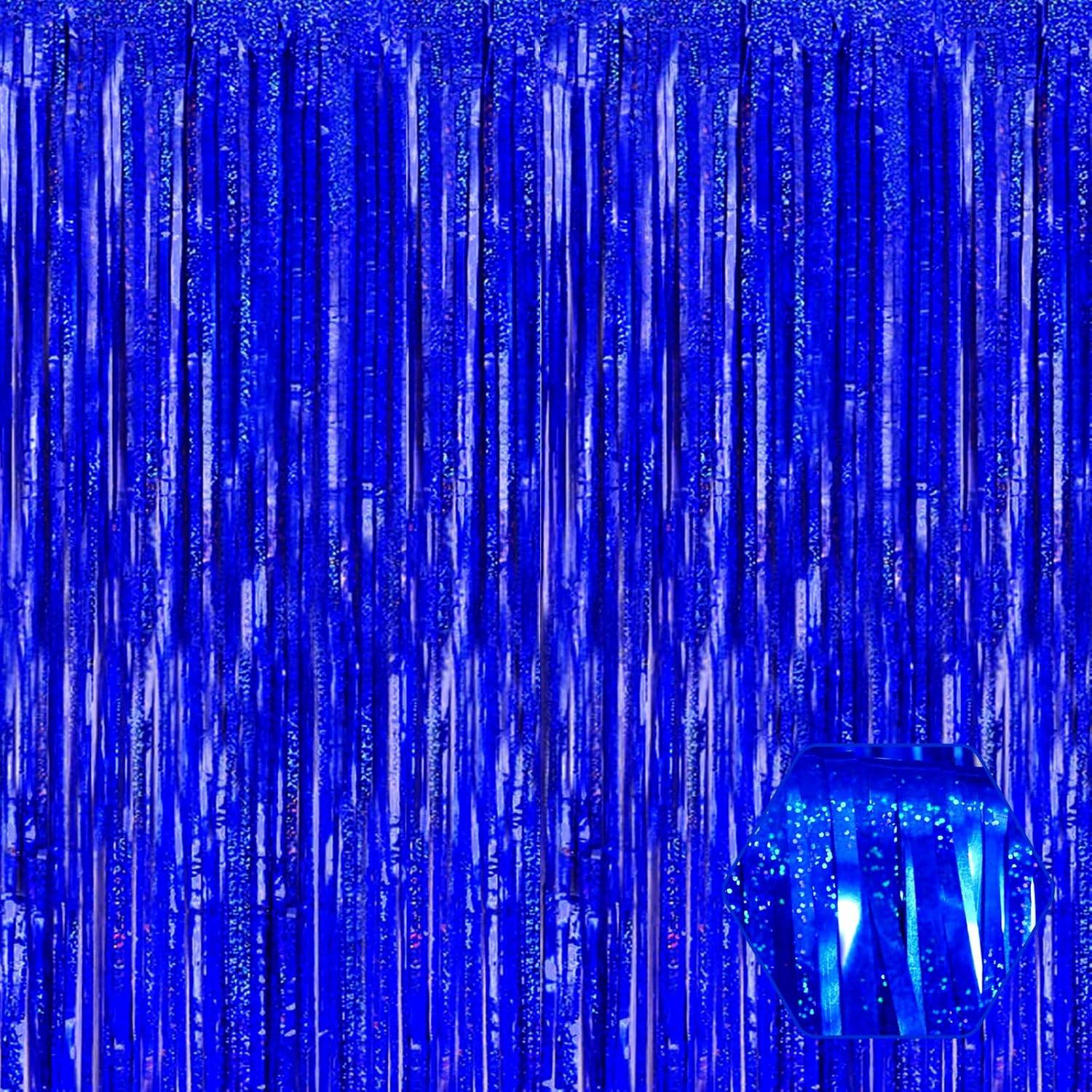 3 Pack Blue Foil Fringe Curtain Backdrop, 3.28Ft x 8.2Ft Metallic Tinsel Foil Fringe Streamer Curtains for Photo Booth, Mother's Day, Easter, Birthday, Wedding Party Decorations