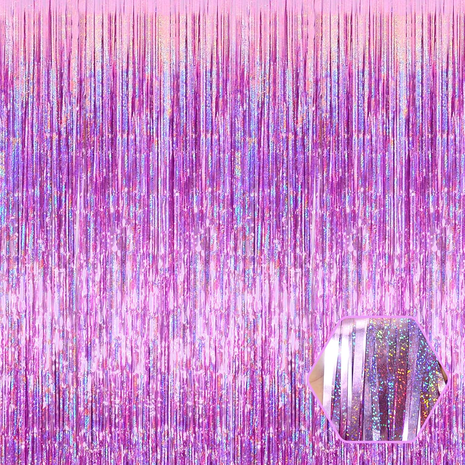 3 Pack Pink Foil Fringe Curtain Backdrop, 3.28Ft x 8.2Ft Metallic Tinsel Foil Fringe Streamer Curtains for Photo Booth, Mother's Day, Easter, Birthday, Wedding Party Decorations