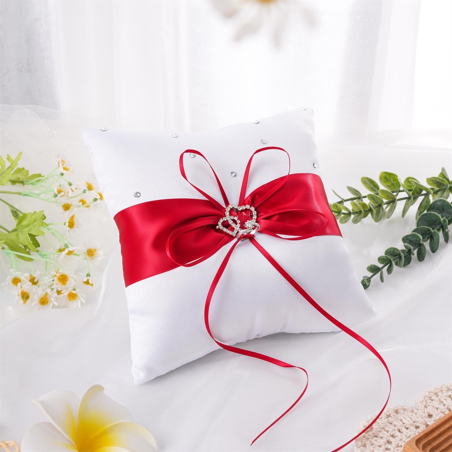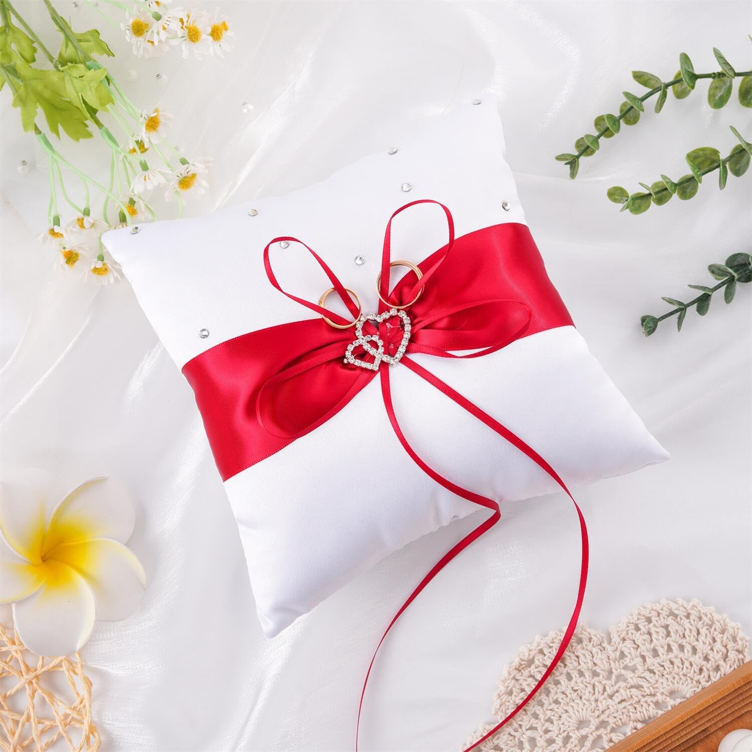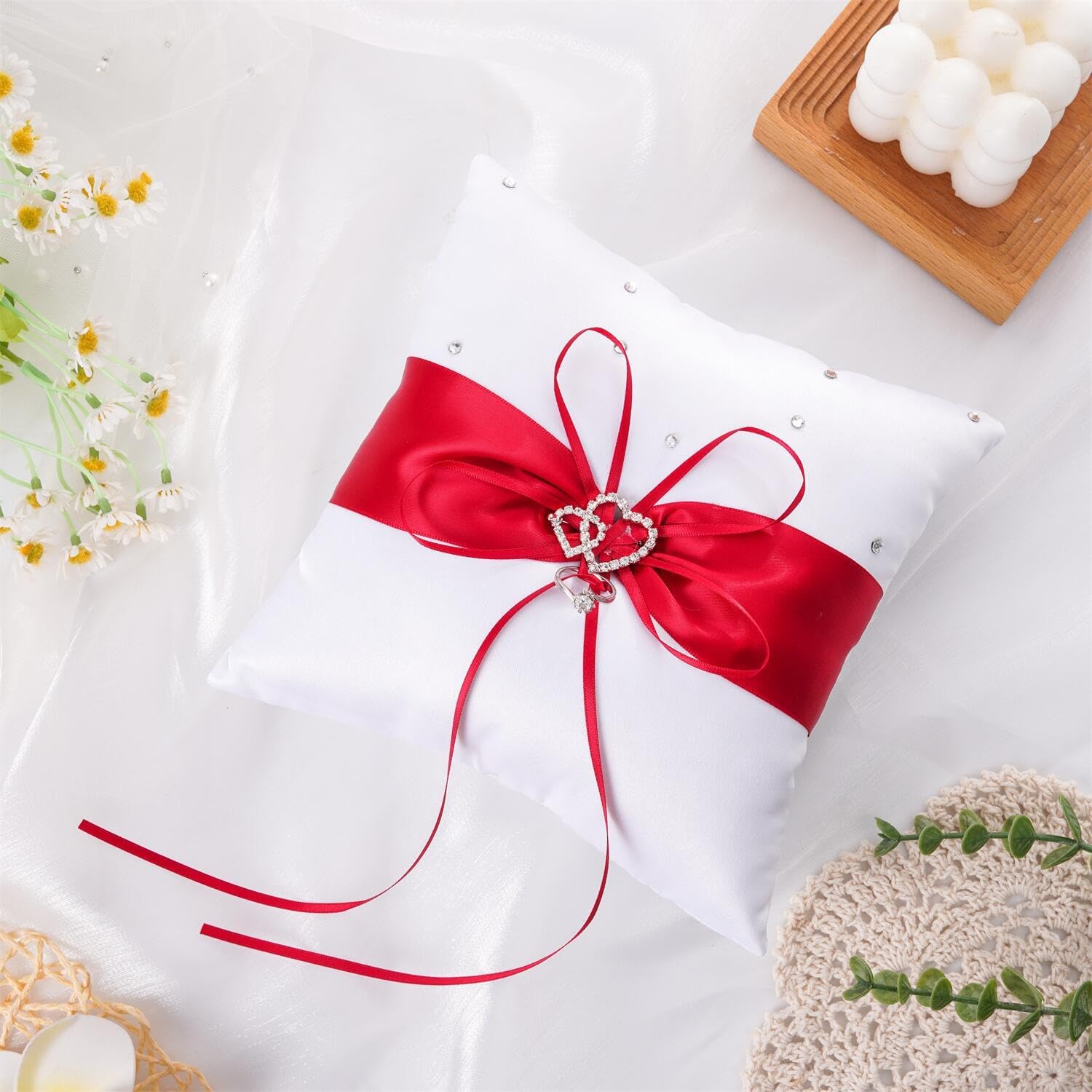 • Soft Material: The pillow for ring bearer made with durable soft satin, ribbon and faux crystal.
