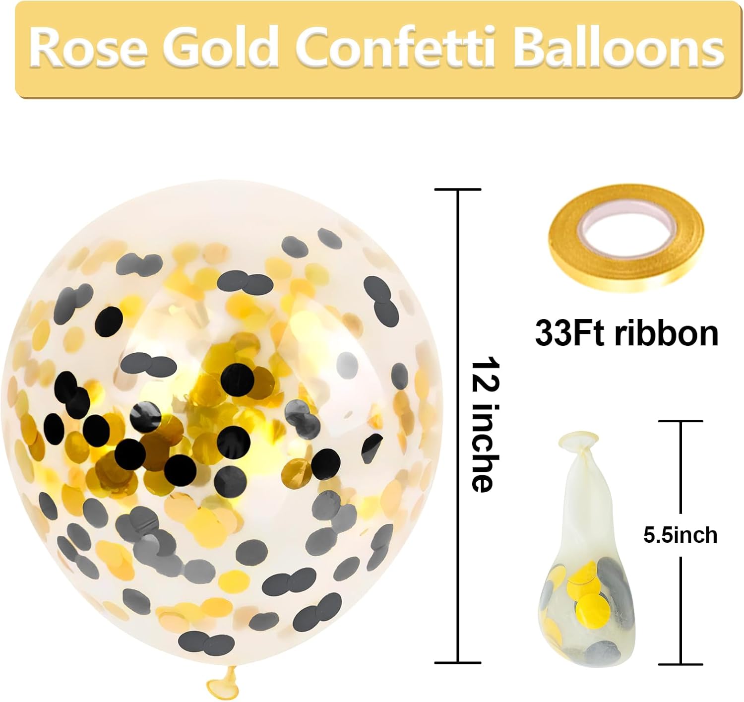 • 【Black Gold Confetti Balloons】- Each sets contains 60pcs black gold confetti balloons of 12 inches and 1pcs gold ribbon (33 feet total).The right amount quantity and most suitable color for each party decoration.