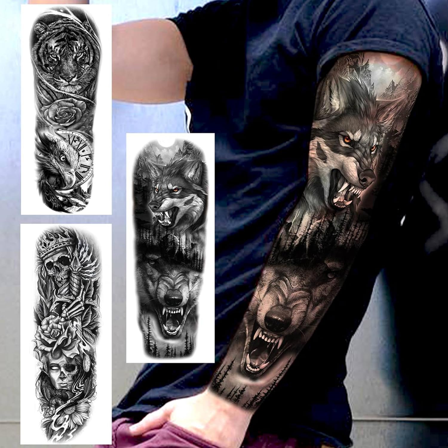 • 🍷20 Sheets Full Arm Temporary Tattoos Sleeve For Men Women Adults Fashion Designs🍸 EGMBGM Brand Original 3D Black Beast Animals Temporary Tattoos Sleeve For Women. There Are 8 Sheets 48x17CM 18.8"x6.6" Large Full Sleeve Temporary Tattoos For Adults Prison Prisoner Gothic Inmate Rapper Scary Skull Skeleton Gangster Wolf Lion Tiger Indian Maori Tribal Totem Armband Elephant Owl Flower and 12 Sheets 21x11.5CM 8.2"x4.5" Half Arm Sleeve Tattoos For Kids Girls Boys In Each Package.