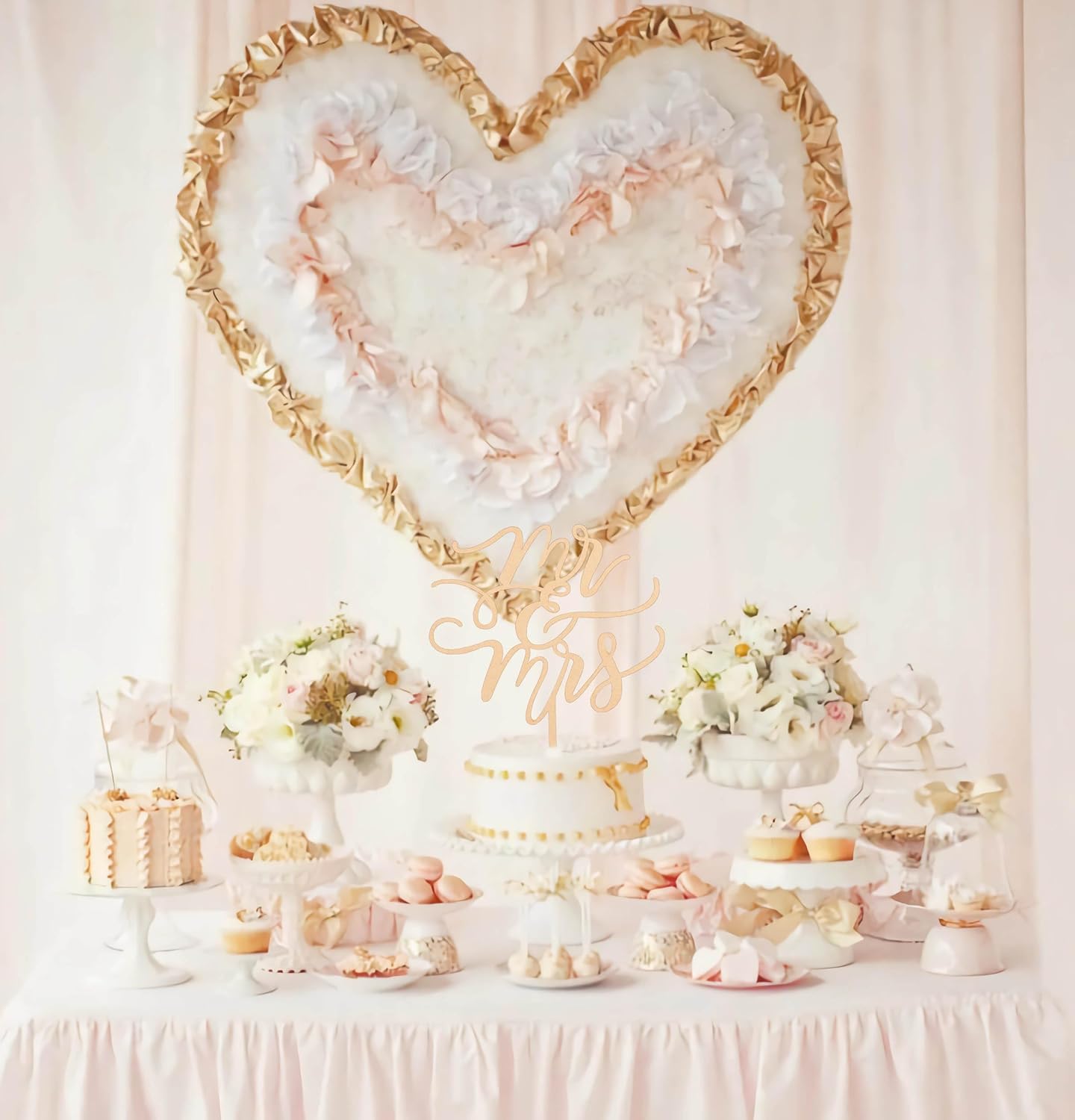 • MR AND MRS WEDDING CAKE TOPPER - Our flagship design Mr and Miss cake topper uses a wooden structure in a rustic romantic freehand brushwork style to reveal the bride and groom important moments. This mr & mrs cake topper is an important supplement to the cake, perfectly romance and sincere love into the wedding party. The full sense of luxury and festivity allows everyone to remember the Wedding Party without leaving any regrets