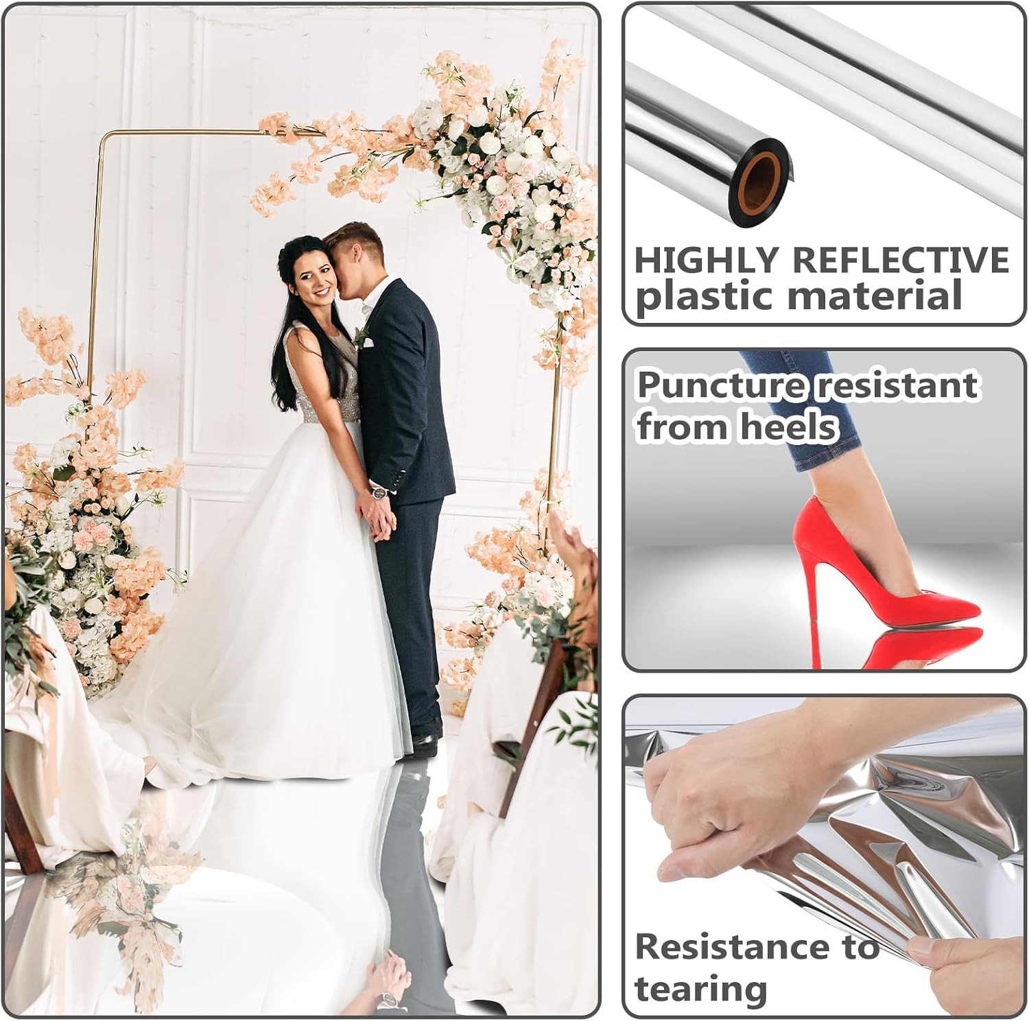 • Sturdy and Thick: this wedding walkway runner is made of quality PET aluminum coating, solid and not easy to tear, deform or break, adopting double sided design, thick and sturdy, so you can keep it well for a long time