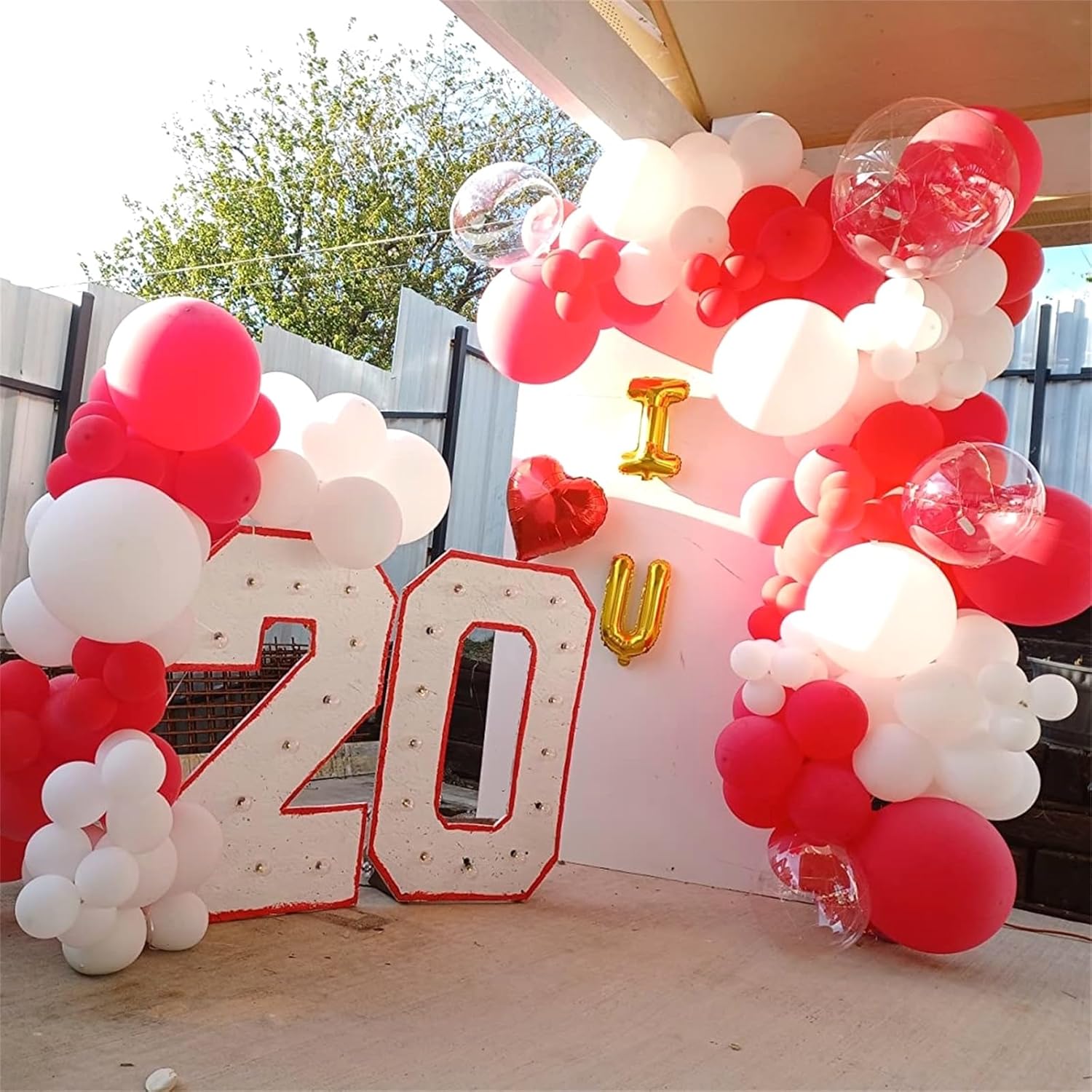 • πŸŽ‰ Enjoy Party Time - Our red white latex balloons are suitable for many indoor events and outdoor occasions and can add atmosphere to your party. It is the perfect decoration for happy occasions or celebratory moments such as women girls birthday, baby shower, Valentine's Day, carnival party, wedding, bridal shower, christmas and other party decoration supplies. Makes your party attractive and romantic.