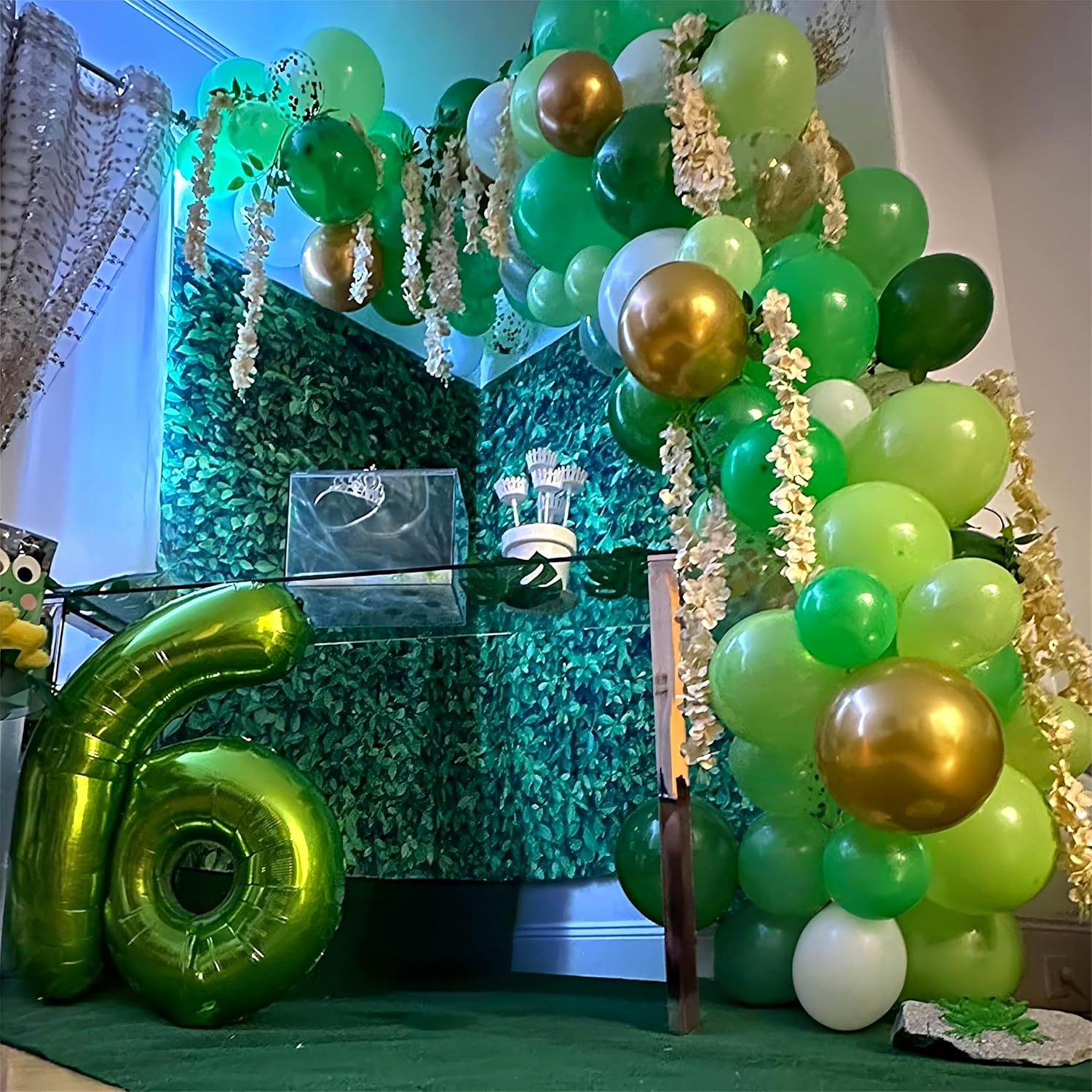 Green Gold Balloons Set, Dark Green Pearl Lime Green Metallic Gold White with Confetti Latex Balloons, Light Green Gold White Balloon for Jungle Dinosaur Birthday Baby Shower Wedding Party Decorations