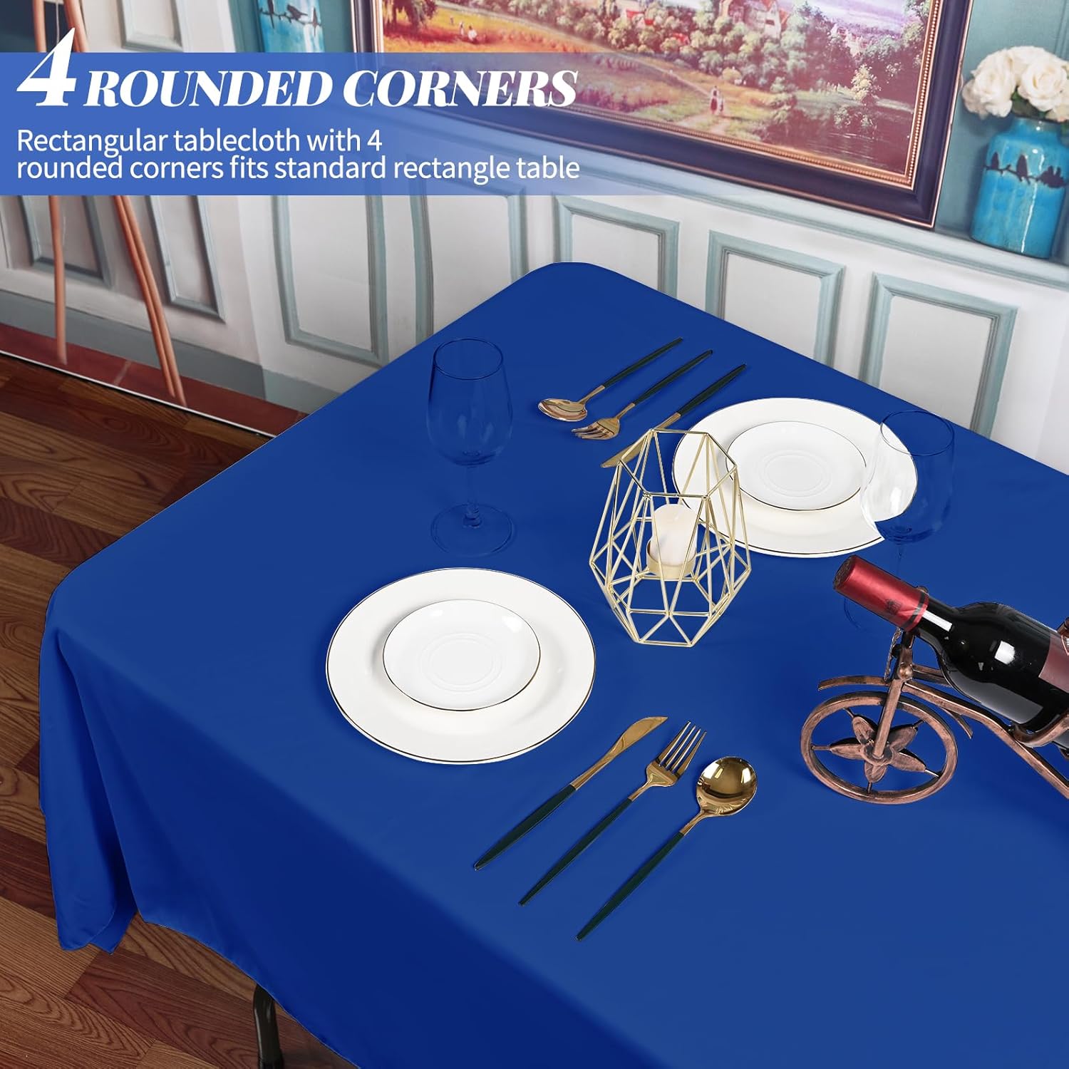 • 🥂【Size】This Royal Blue table cloth is 60x102 Inch, for standard 6ft table, providing 15 inch drop. Royal Blue table cover is more luxurious, classic and gracious, for both formal & casual settings and makes a great for all occasions.