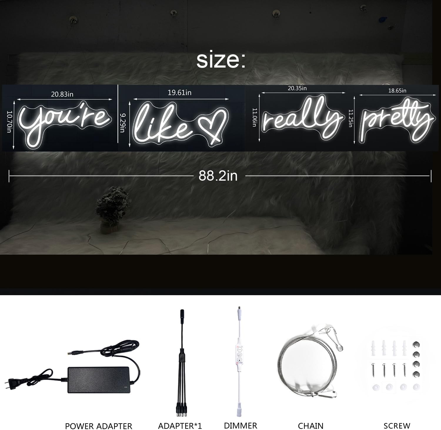 You're Like Really Pretty Neon Signs, Neon Light for Wall Decor,Light Up Sign for Wedding, Engagement,Neon Signs for Bedroom Decor