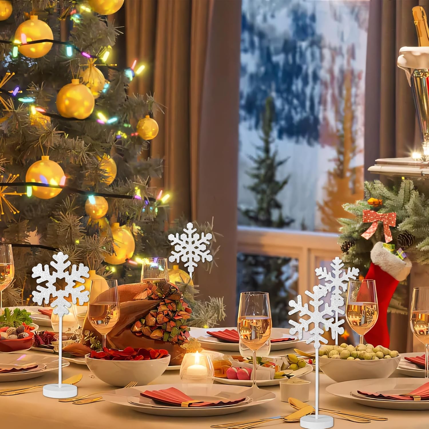 • Easy to Assemble and Store: Our winter snowflake decorations are easy to assemble and can be set up on any flat surface. They are composed of three parts: glitter snowflake shaped blocks, long sticks, and wooden base, which is convenient to carry and store. They will add luster to your Christmas party and can be prepared as intelligent gifts.