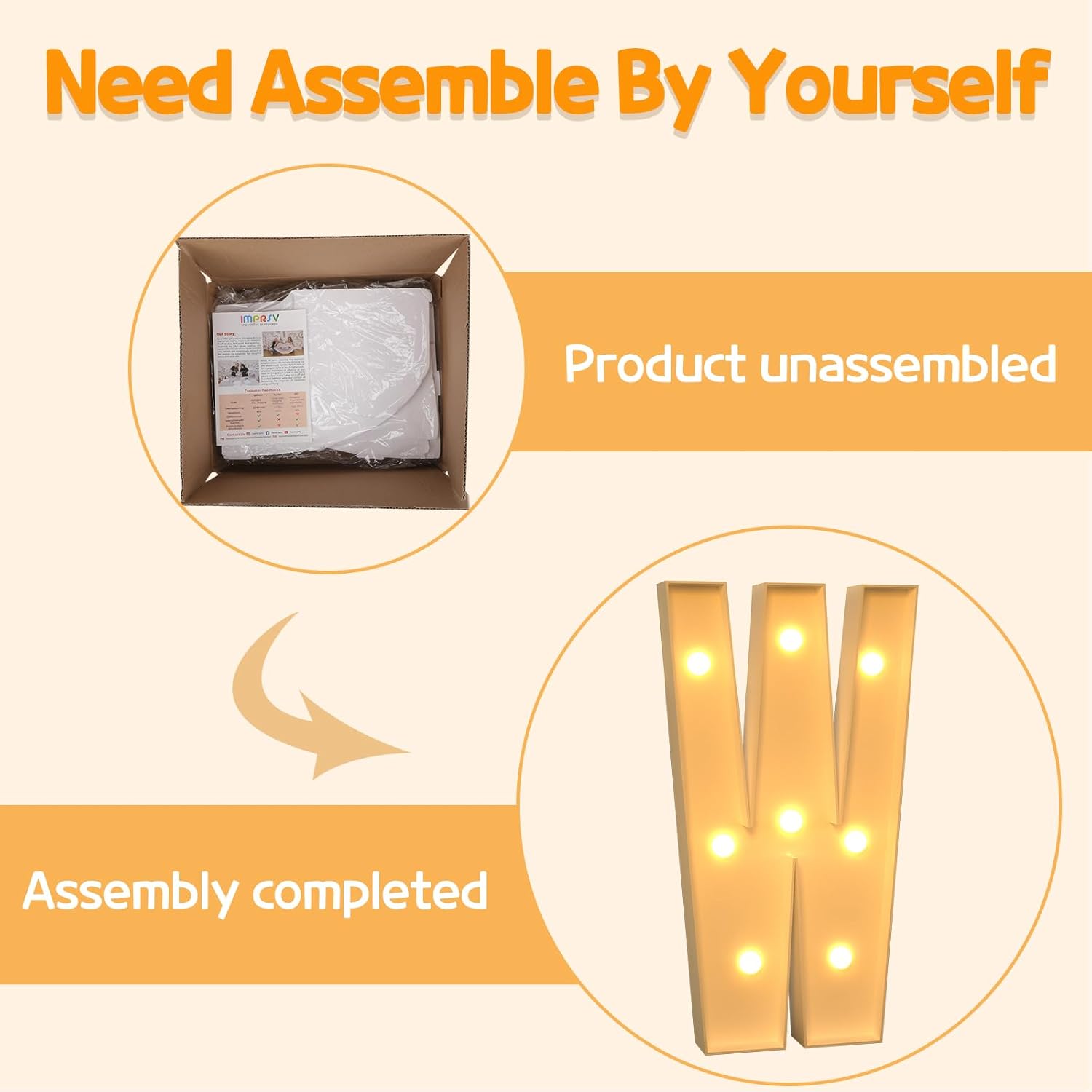 • Assembly Required: Our large marquee letters is made from foam board and easy to assemble with our splicing mode. Just follow the numbered instructions to align and insert the bottom plate, and reinforce it with a hot glue gun. Then, you're done!