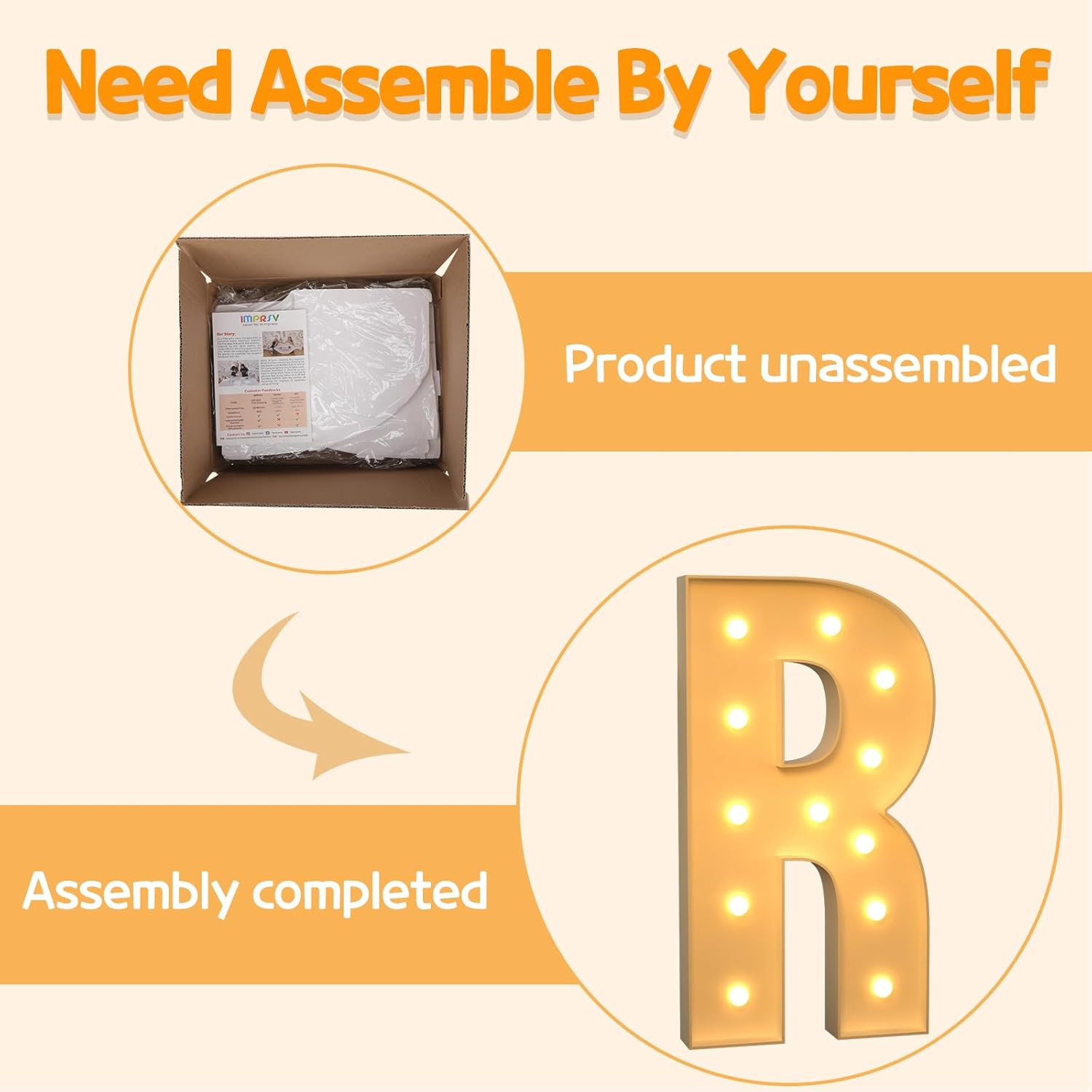 • Assembly Required: Our large marquee letters is made from foam board and easy to assemble with our splicing mode. Just follow the numbered instructions to align and insert the bottom plate, and reinforce it with a hot glue gun. Then, you're done!