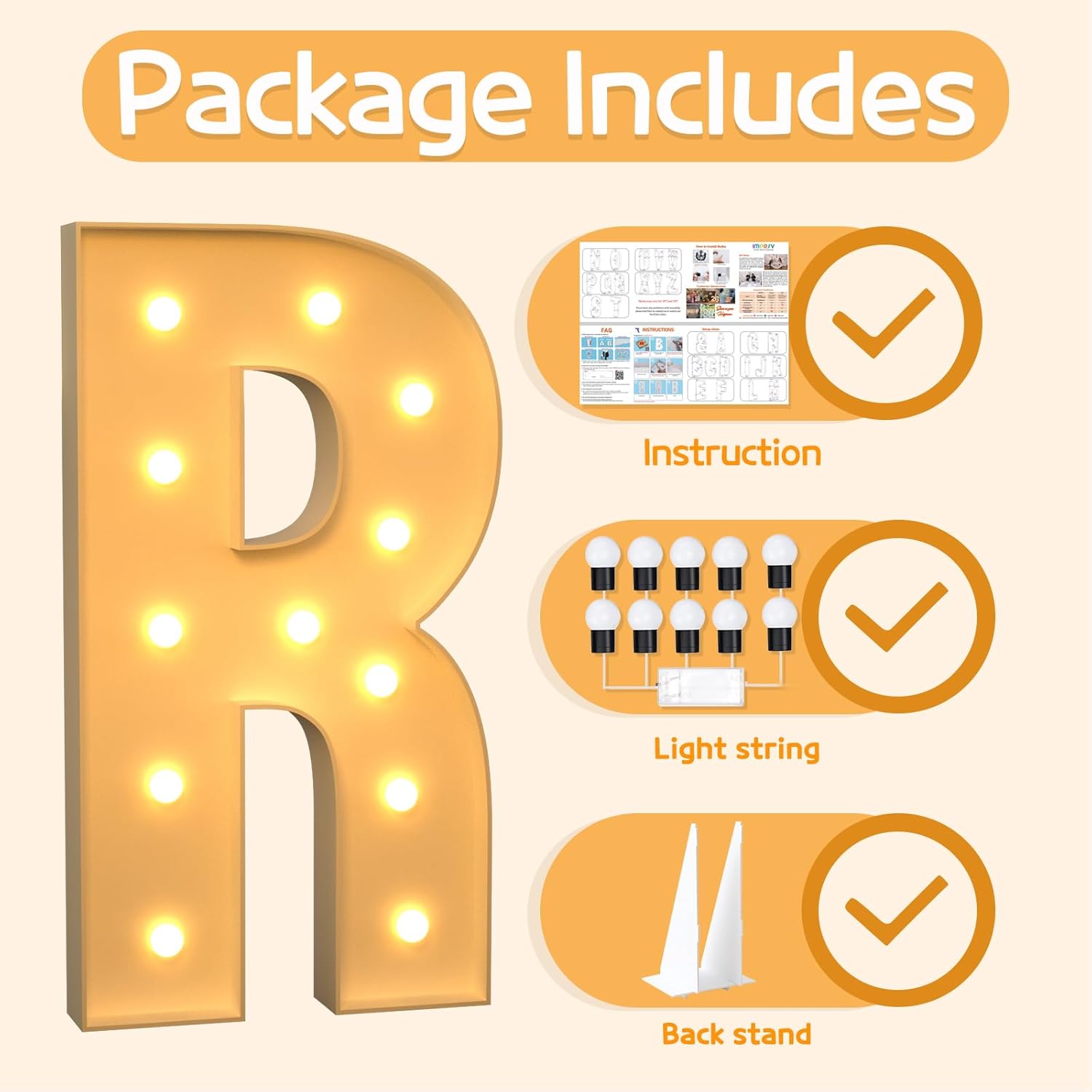 Marquee Letters 4 Feet Tall Large Light Up Letters R Wedding Mr and Mrs Sign Marry Me Engagement Party Decor Yellow Light Birthday Decorations Balloon Arch Kit Foam Sign R