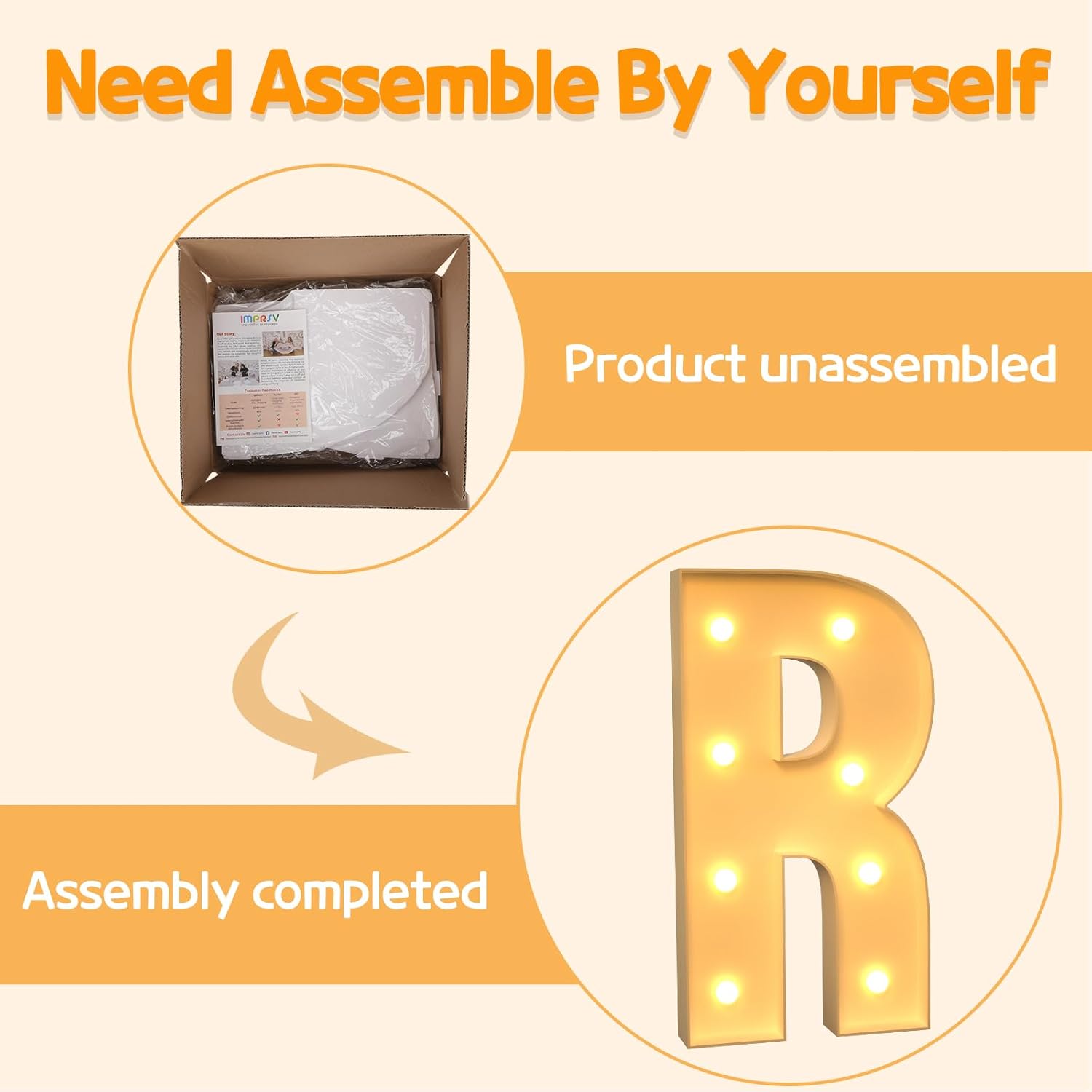 • Assembly Required: Our large marquee letters is made from foam board and easy to assemble with our splicing mode. Just follow the numbered instructions to align and insert the bottom plate, and reinforce it with a hot glue gun. Then, you're done!