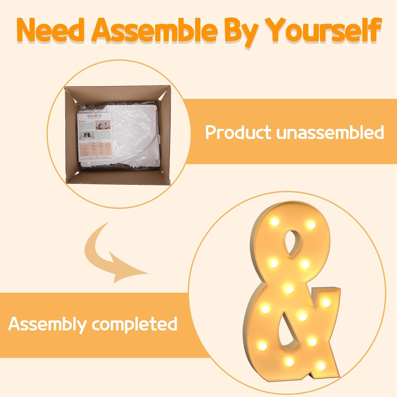 • Assembly Required: Our large marquee letters is made from foam board and easy to assemble with our splicing mode. Just follow the numbered instructions to align and insert the bottom plate, and reinforce it with a hot glue gun. Then, you're done!