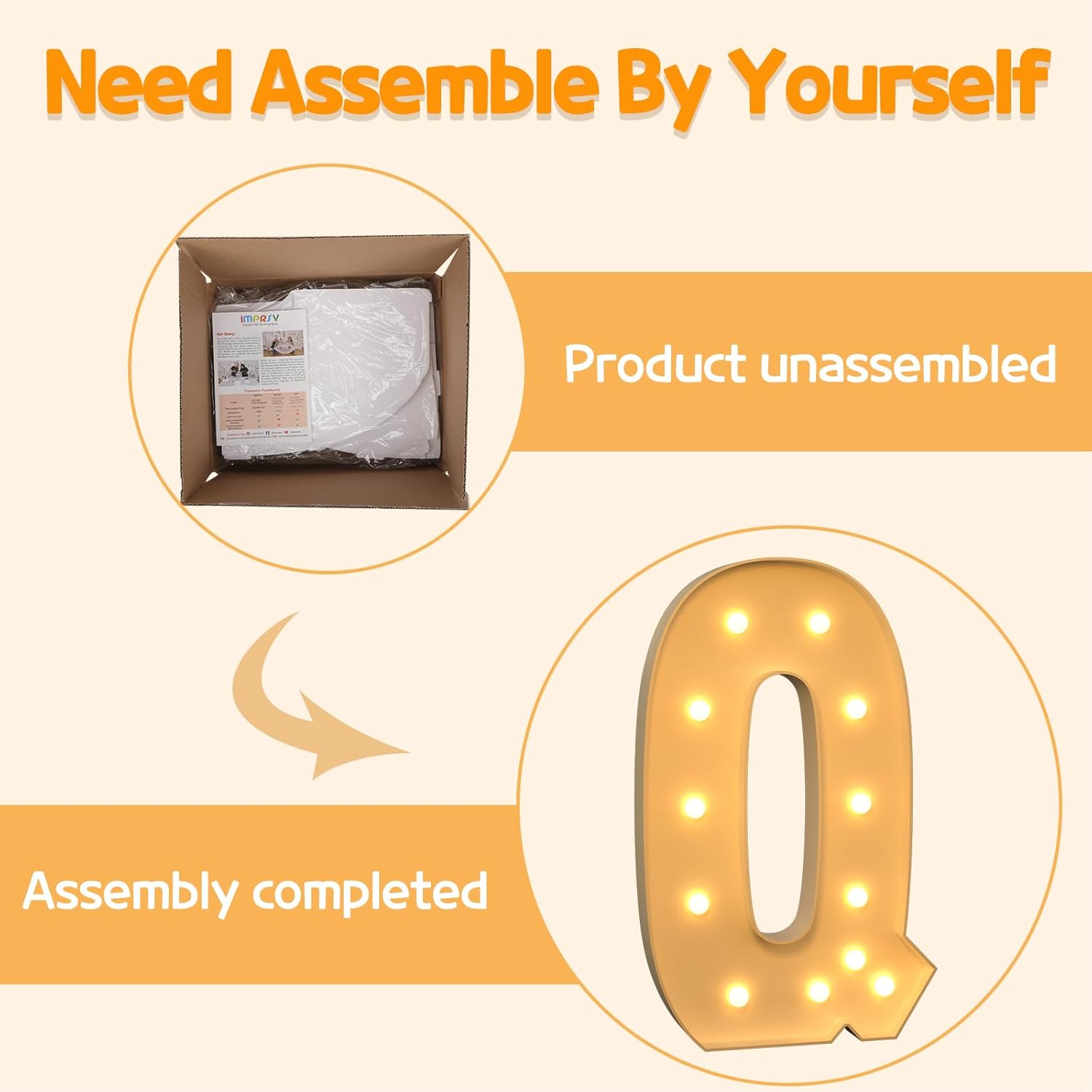 • Assembly Required: Our large marquee letters is made from foam board and easy to assemble with our splicing mode. Just follow the numbered instructions to align and insert the bottom plate, and reinforce it with a hot glue gun. Then, you're done!