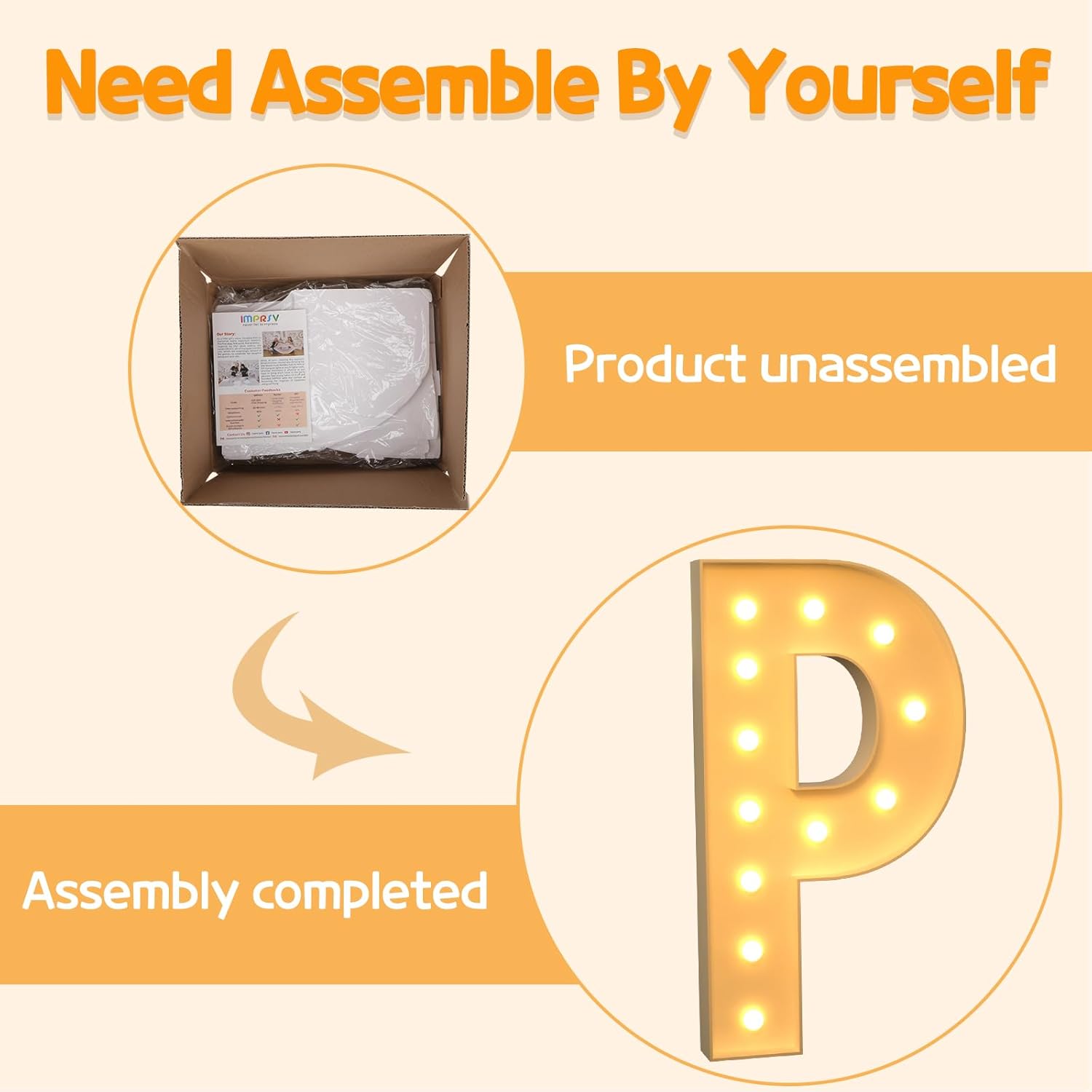 • Assembly Required: Our large marquee letters is made from foam board and easy to assemble with our splicing mode. Just follow the numbered instructions to align and insert the bottom plate, and reinforce it with a hot glue gun. Then, you're done!