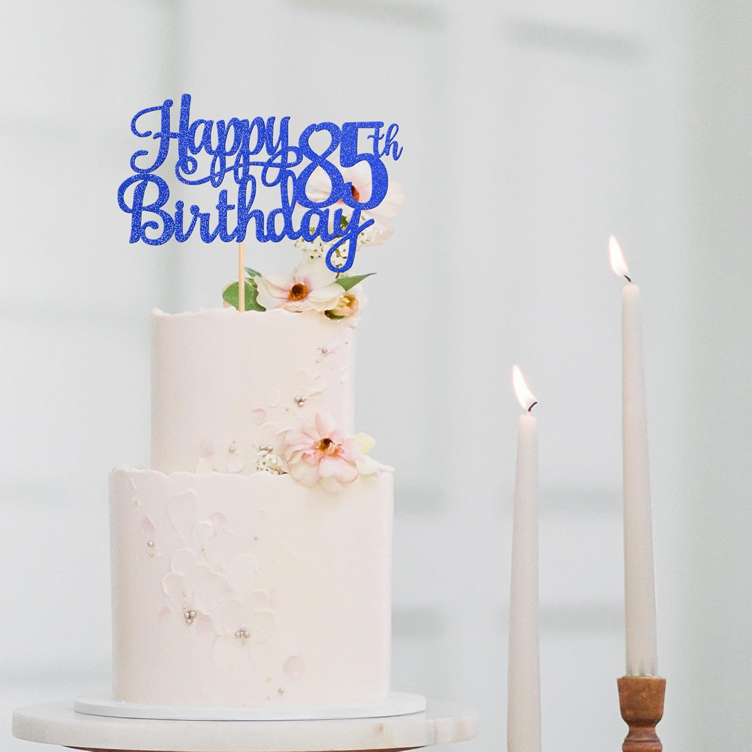 1 PCS Happy 85th Birthday Cake Topper Glitter Cheers to 85 Years Birthday Cake Pick Eighty Five 85 Fabulous Cake Decoration for Happy 85th Birthday Theme Party Decorations Supplies Blue