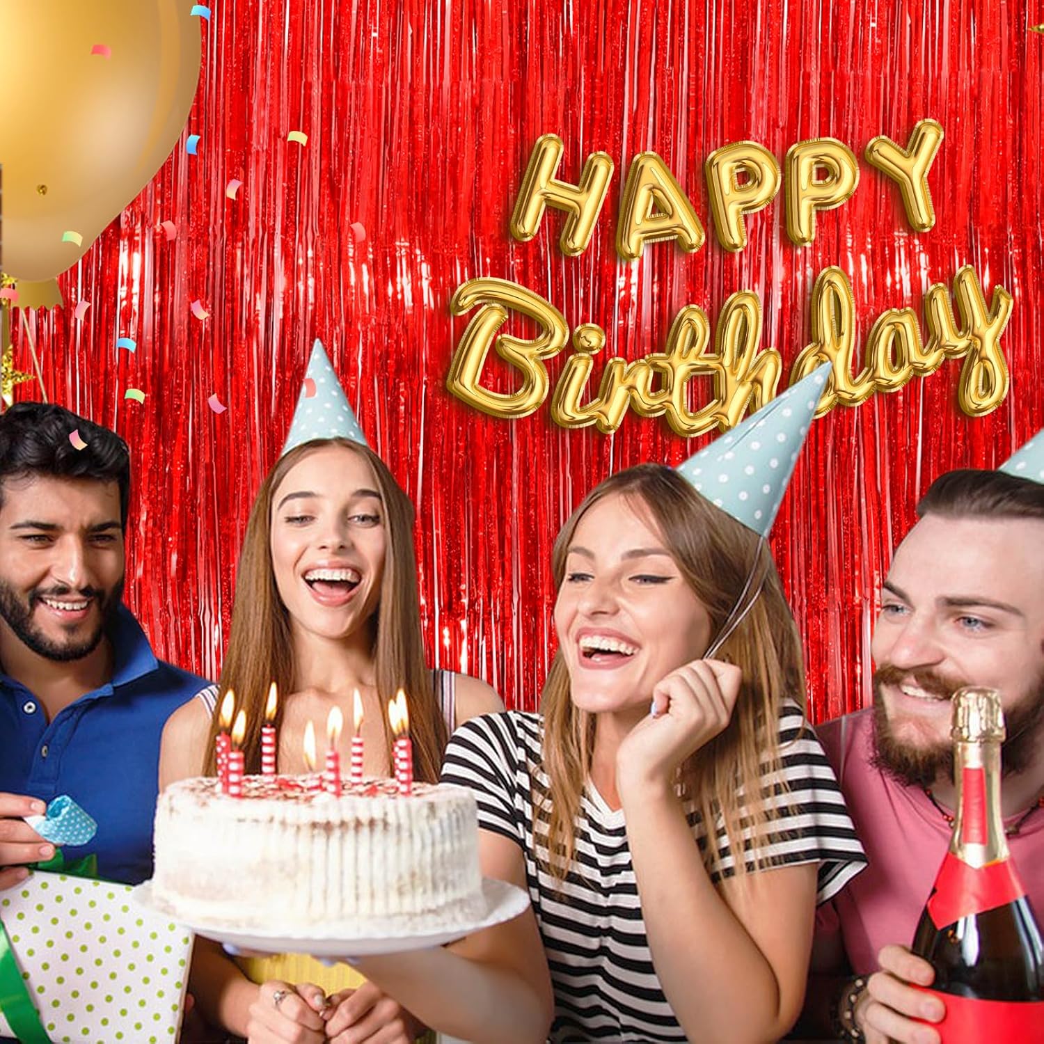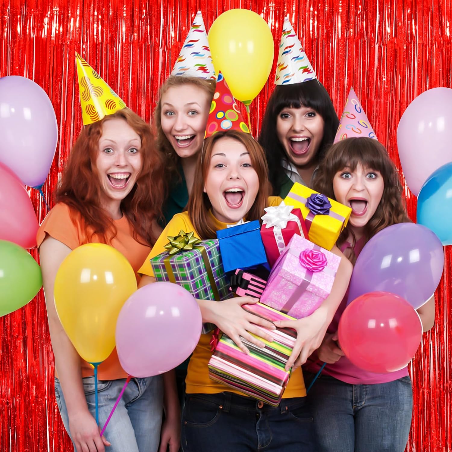 Red Streamers Foil Fringe Curtain 3.3 x 8.3ft Party Streamers 2Pack Metallic Streamer Curtains Mermaid Birthday Themed Party Decorations Tinsel Curtain for Parties Streamers for Wedding Xmas Decor