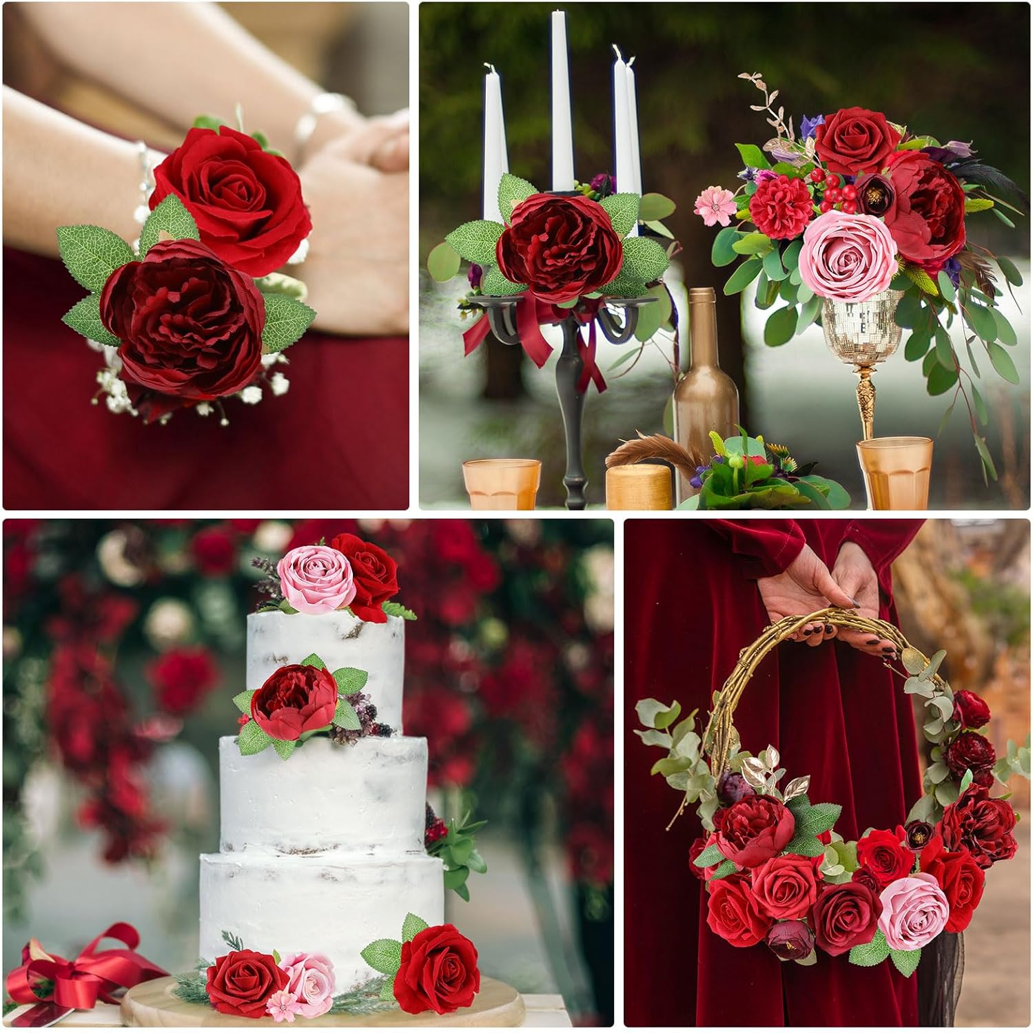 • Usages: Perfect for making bouquets, centerpieces, kissing balls, boutonnieres, cake flowers, floral arrangements, DIY wreaths, or any other flower decorations/arrangements that you want at your wedding, party, baby shower stages, parlors, bedrooms, parks, offices, dining rooms, courtyards, stores and any other place that you want to decorate